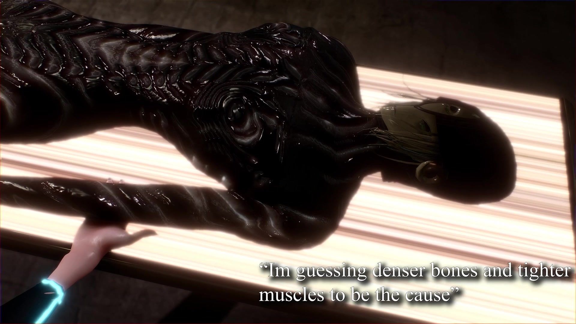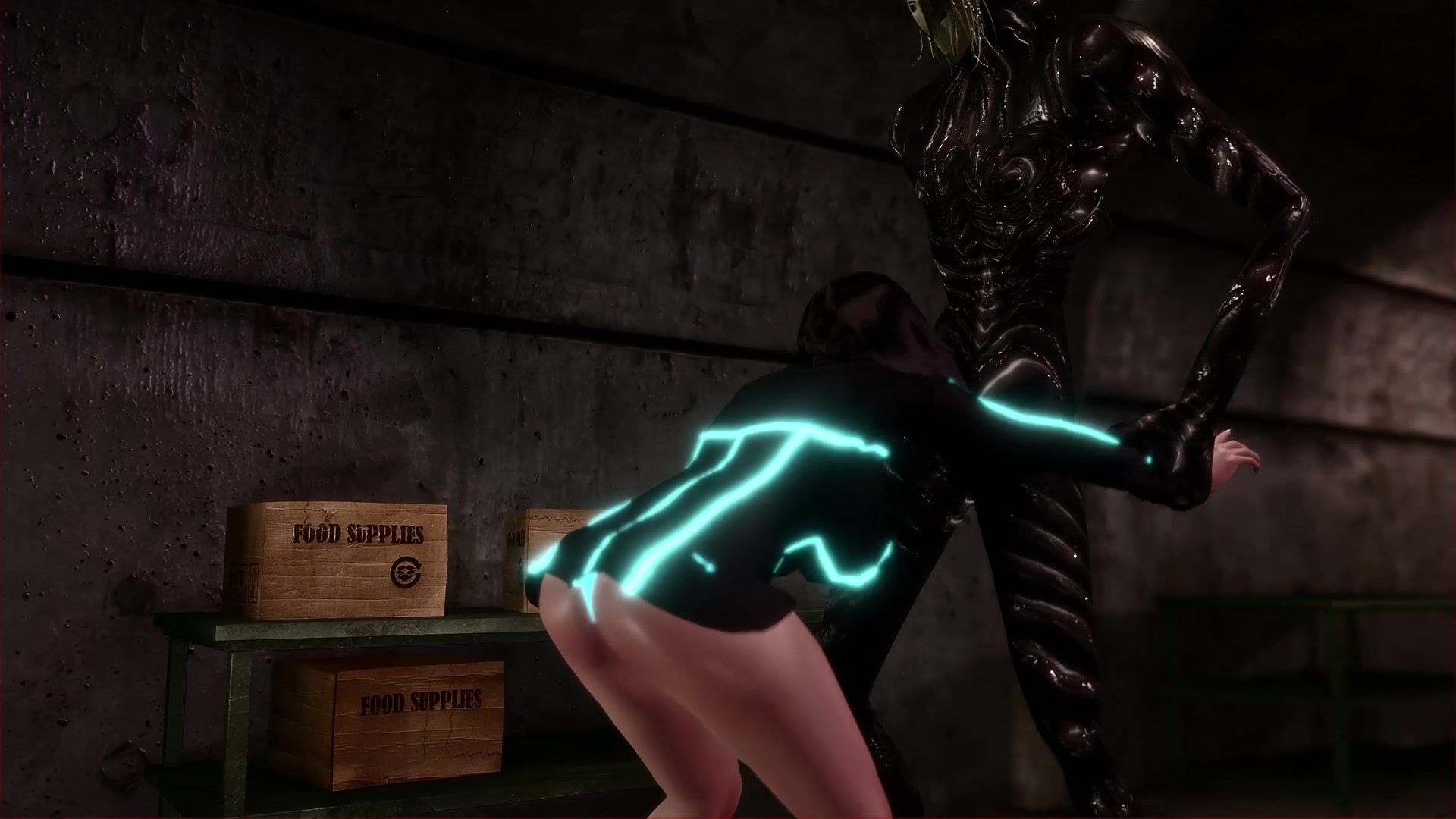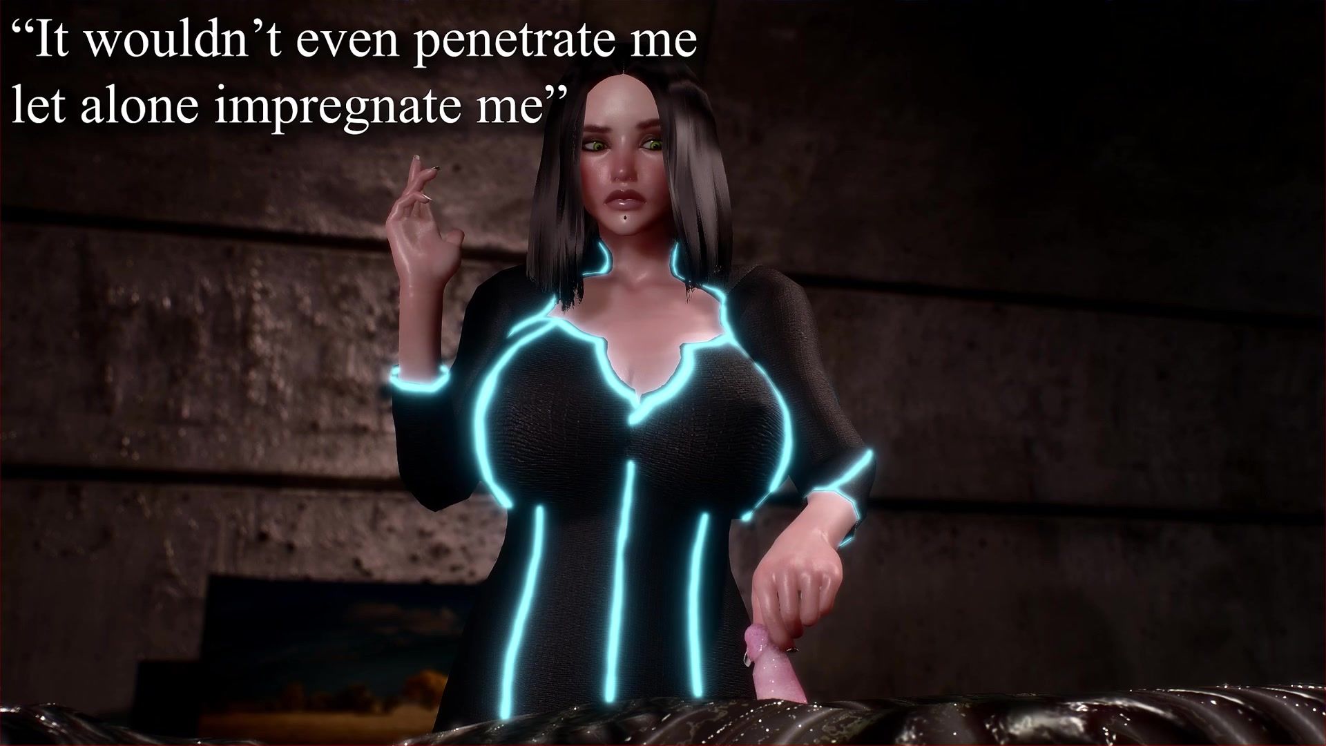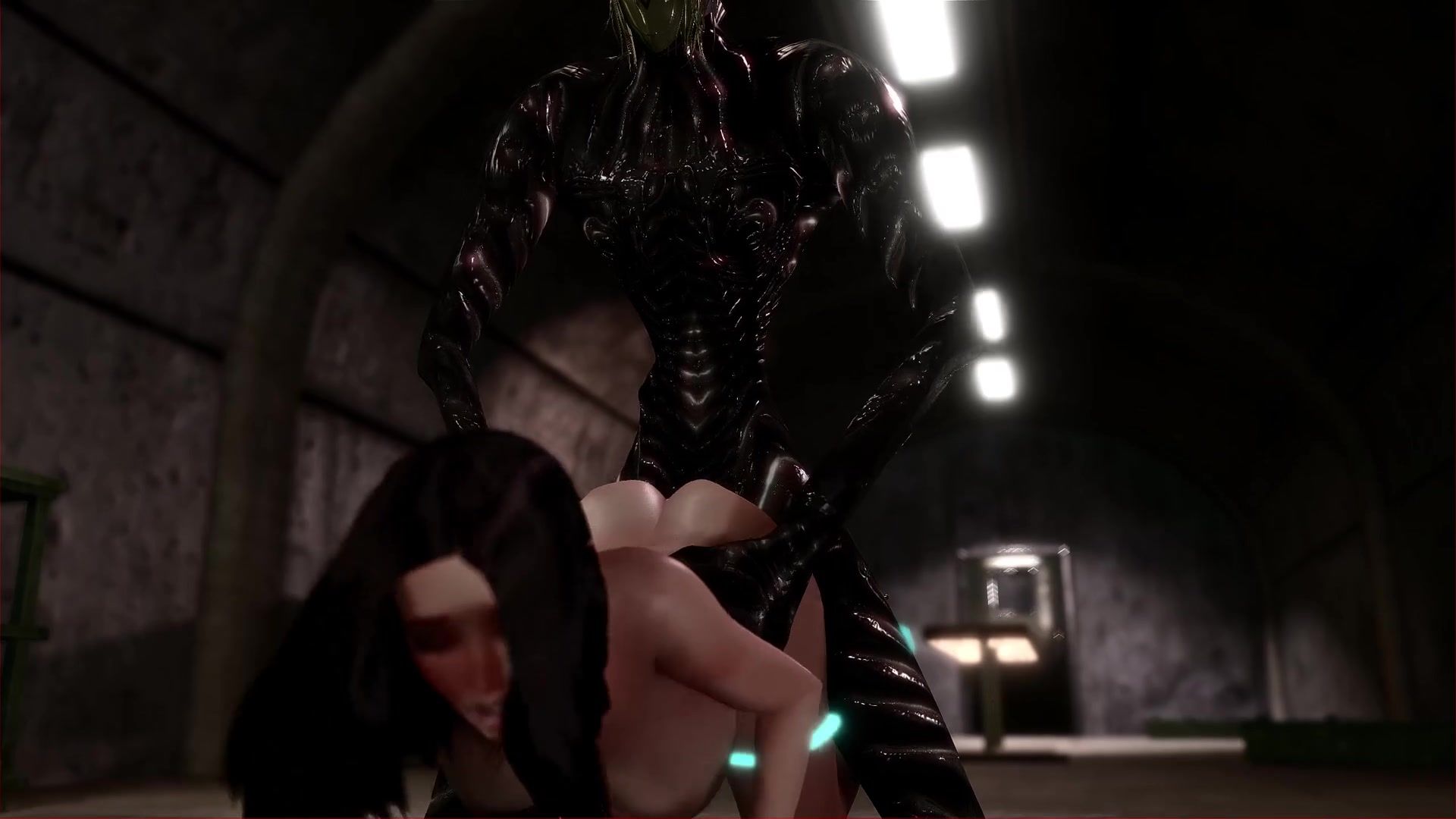 A titsy brunette found an alien monster and sheltered him in her basement. She tried to revive him, but he kept sleeping. One day, when the girl was in the basement, it came to life and attacked her. The alien didn't kill the busty beauty, but instead fucked her hard in all her holes.