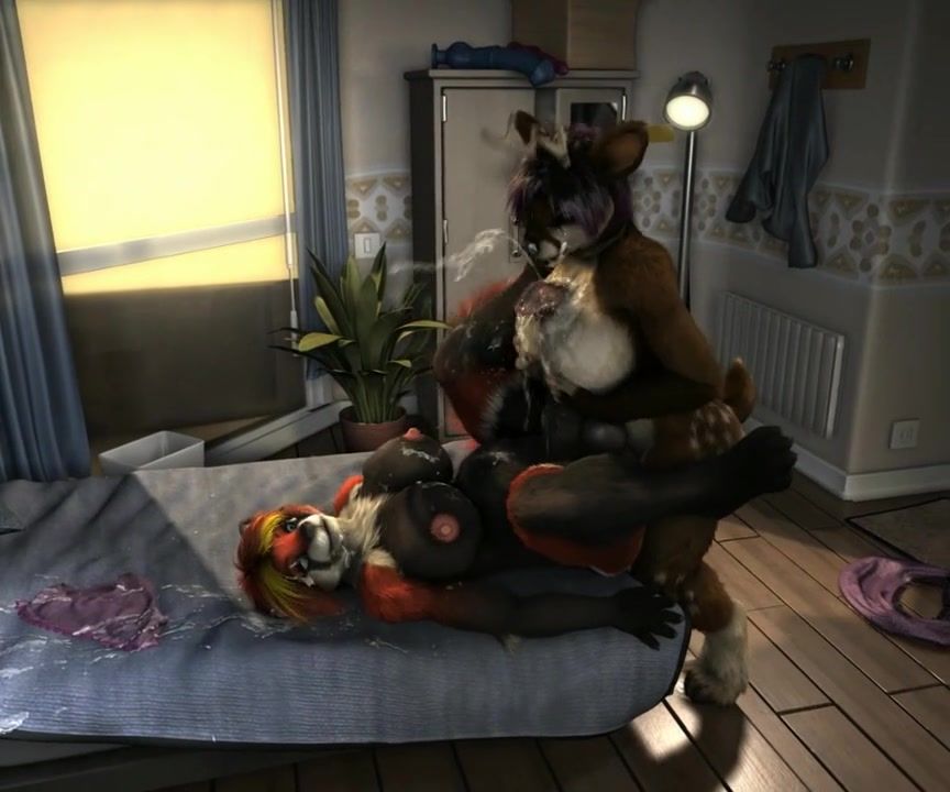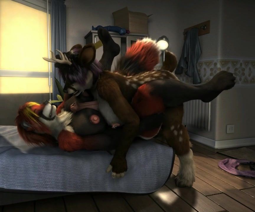 A big furry squirrel with big tits from a funny adult cartoon was sitting at home alone and bored. It was good that a reindeer with a big and strong penis came to visit her. After hot sex on the bed, the reindeer cum on the beautiful fur of the squirrel, although she asked him not to.