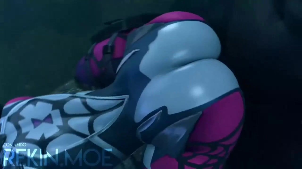 The hot girl with the big luscious ass of Widowmaker from the game Overwatch got into a doggy style pose. A black lover with a big horse dick got behind her and entered her. He fucked hard with increasing pace, and then cum inside the beauty's vagina.