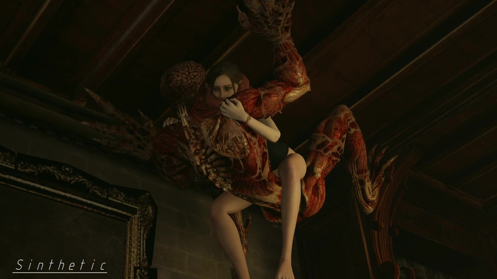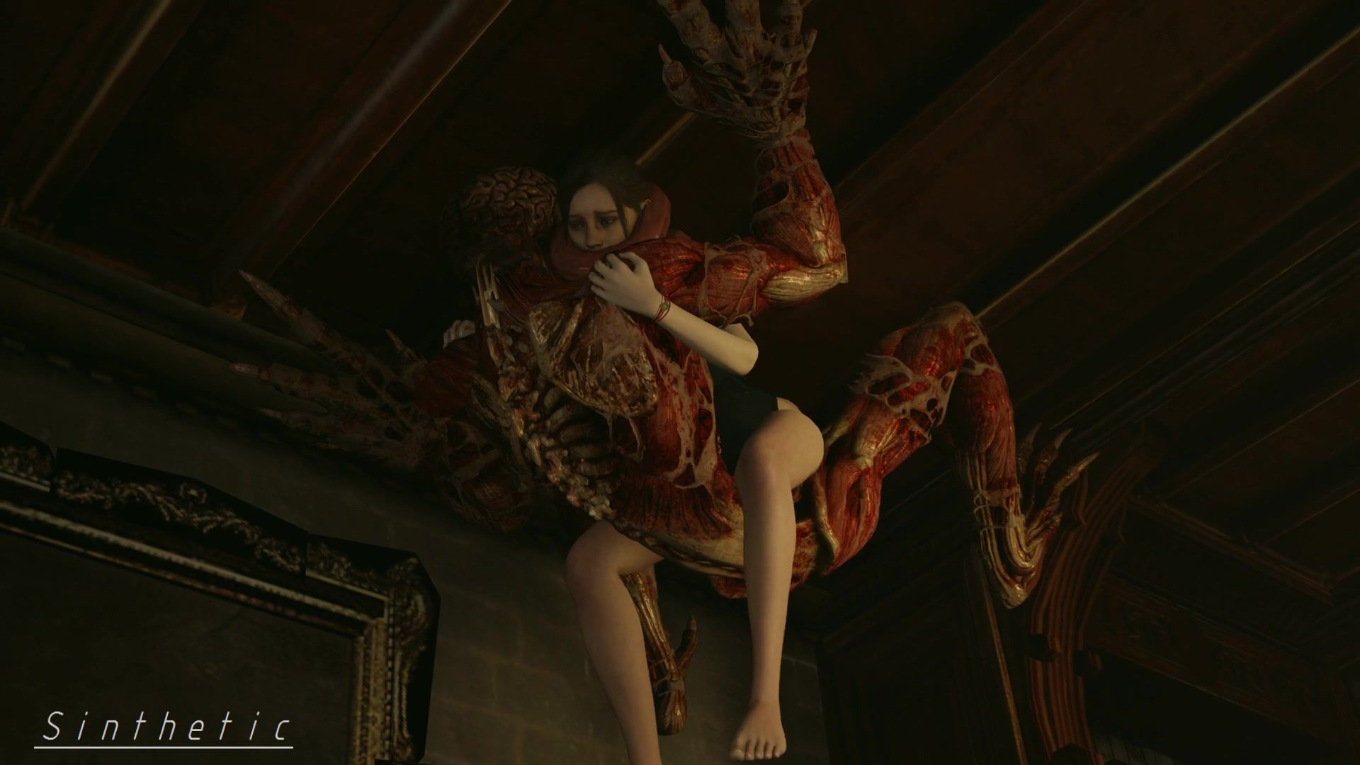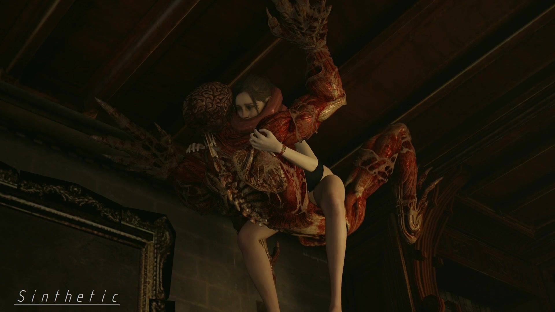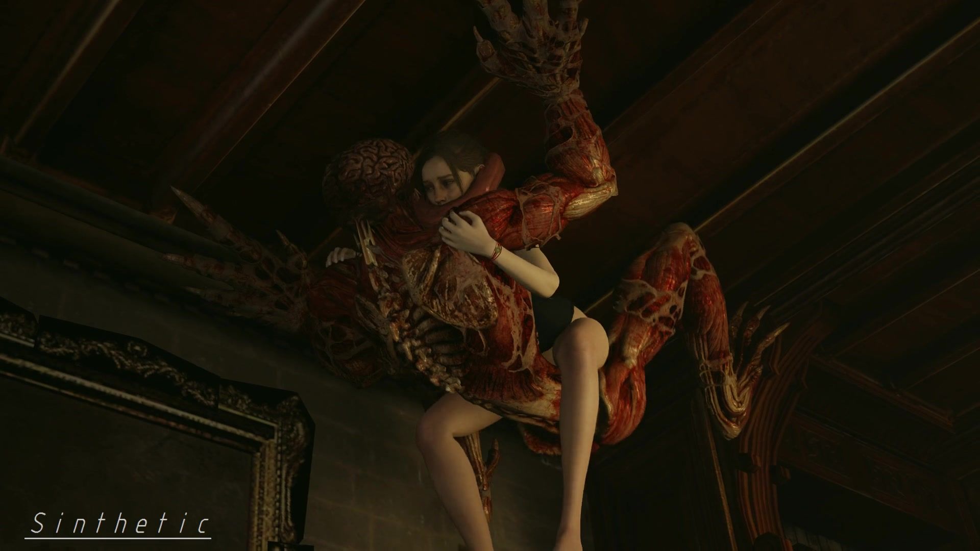 Poor Claire getting screwed by monster Licker on the ceiling