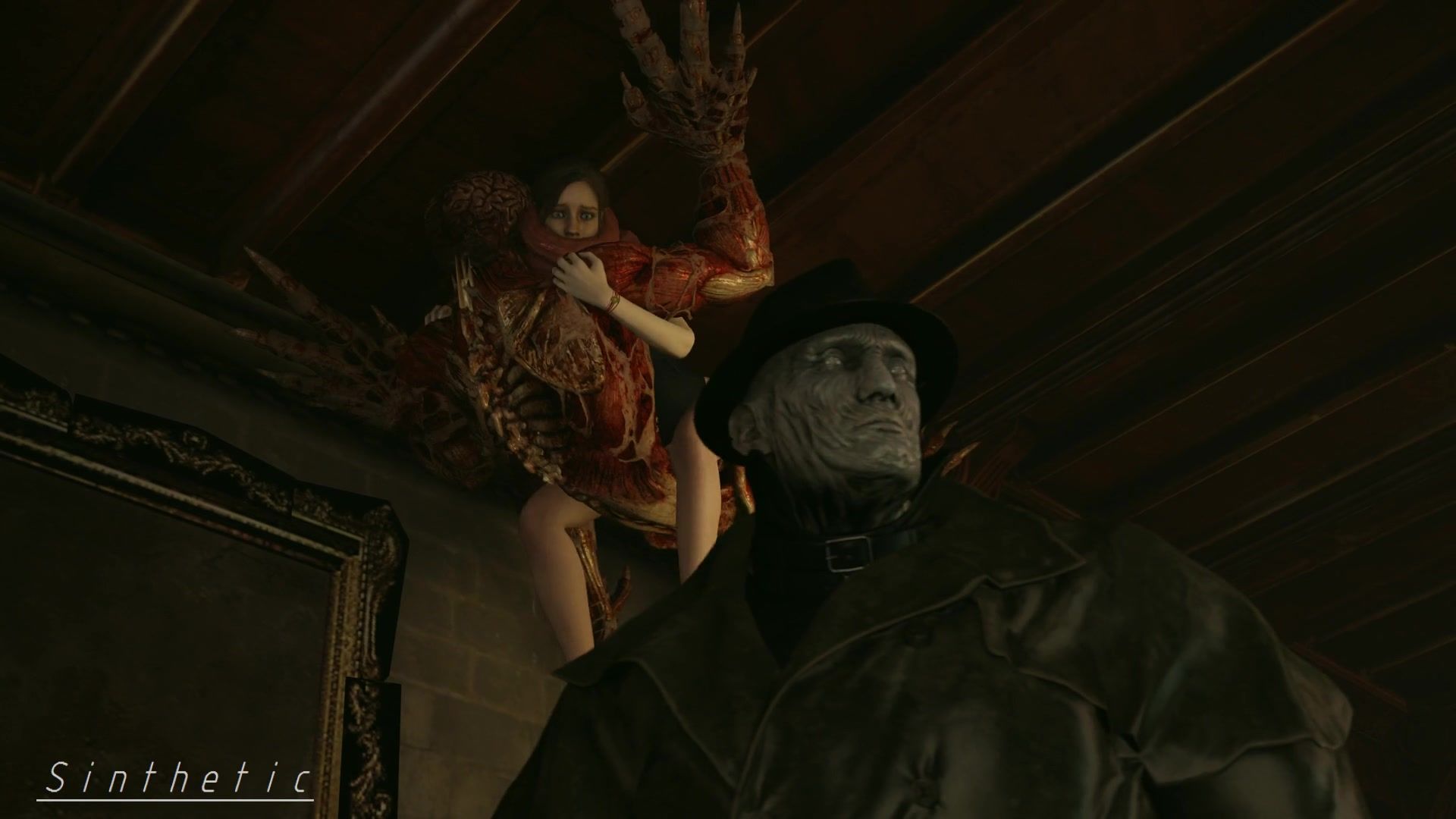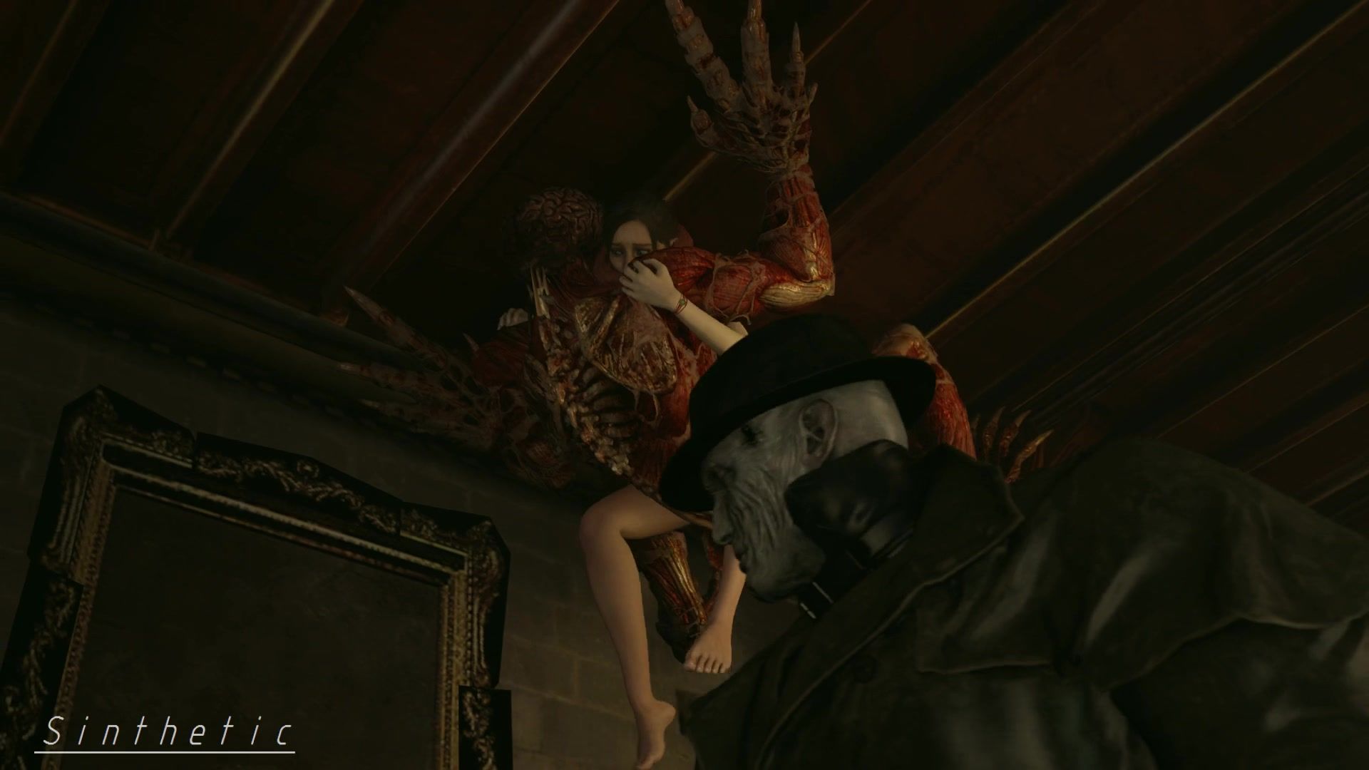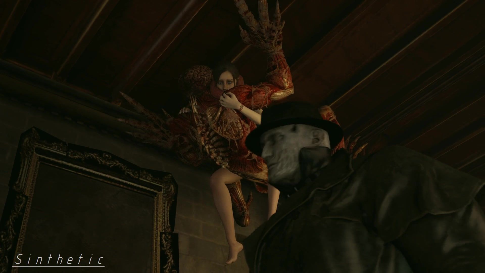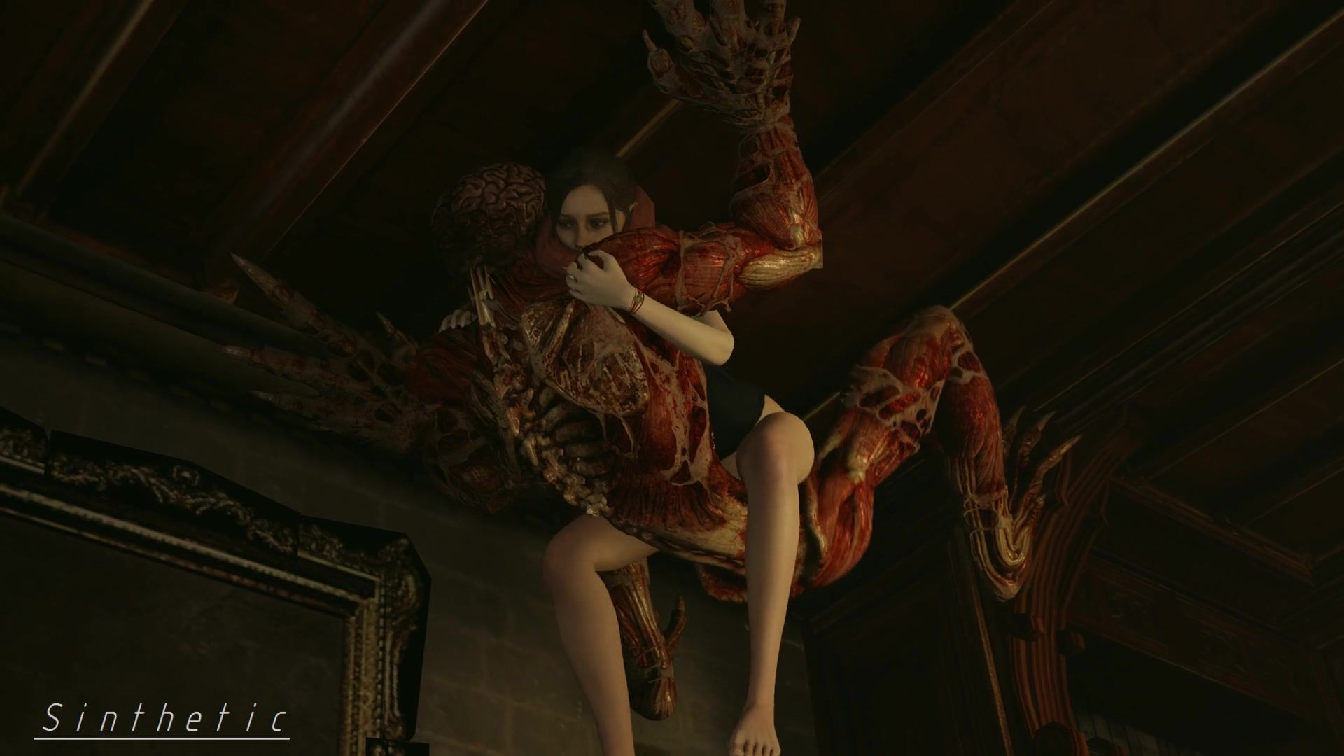 Poor Claire getting screwed by monster Licker on the ceiling