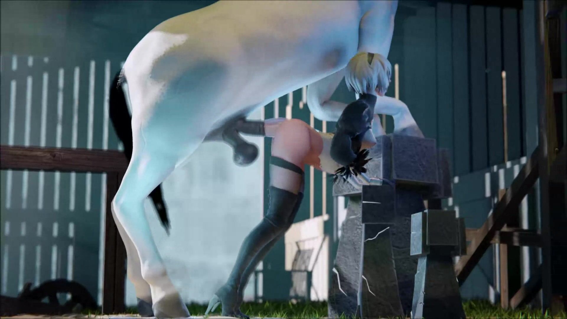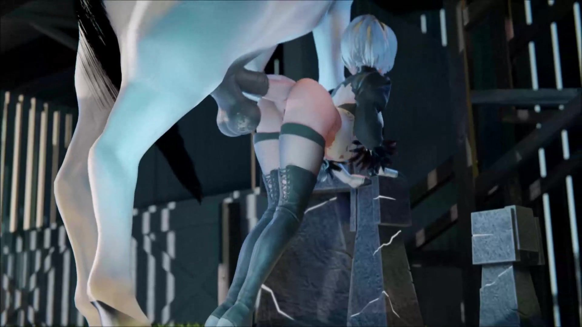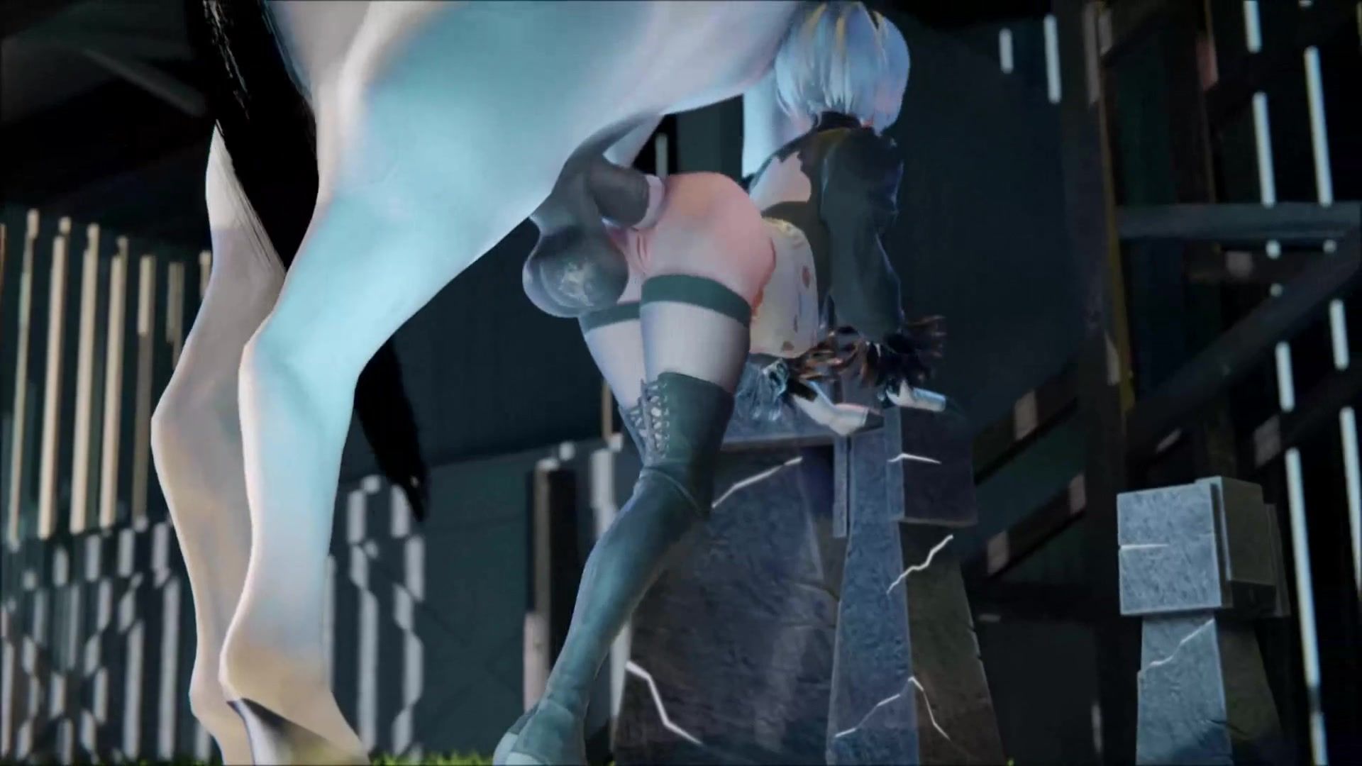 Pretty white horse demolished YoRHa No.2 Type B's asshole