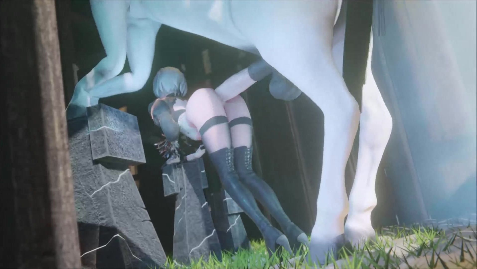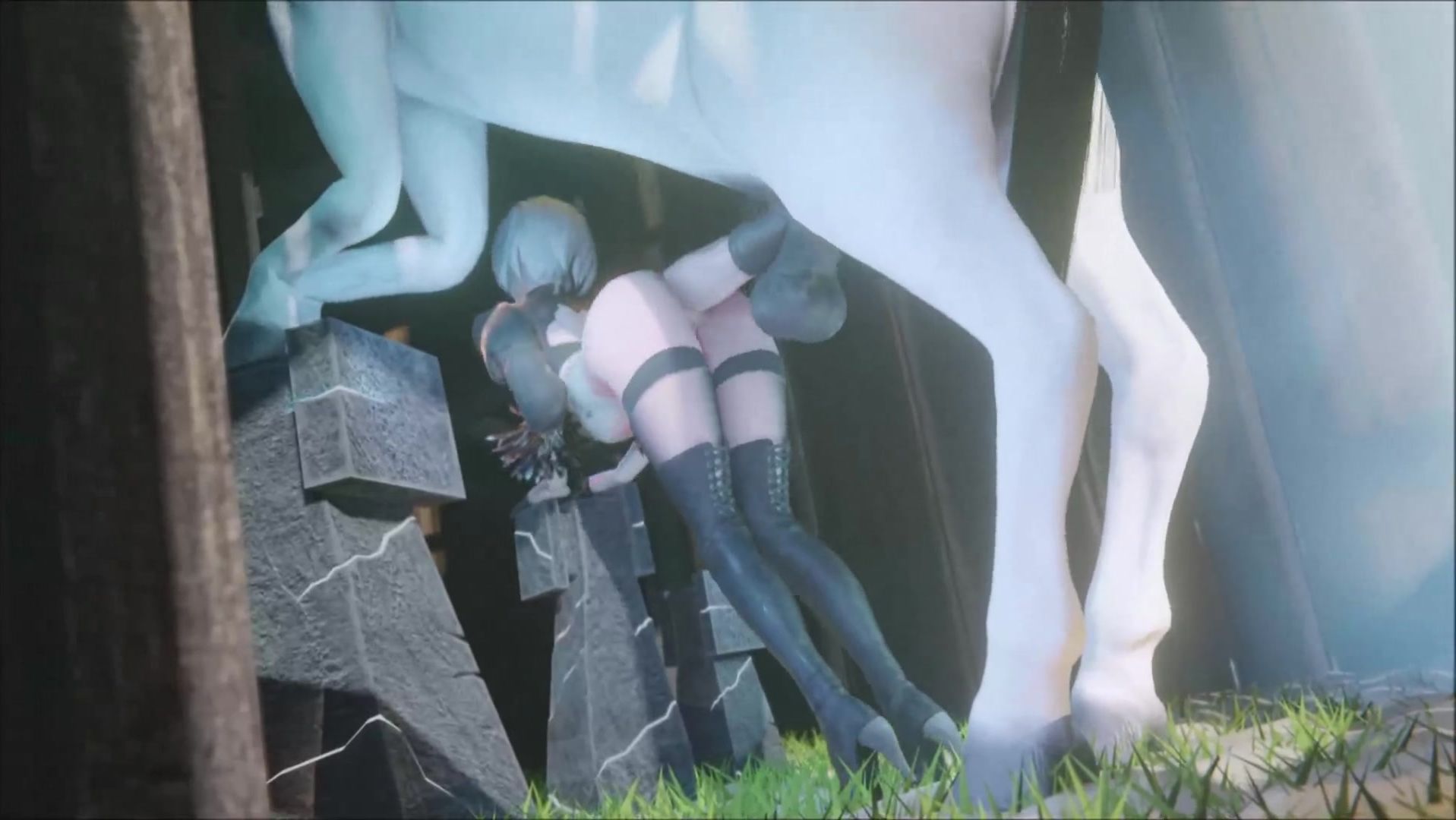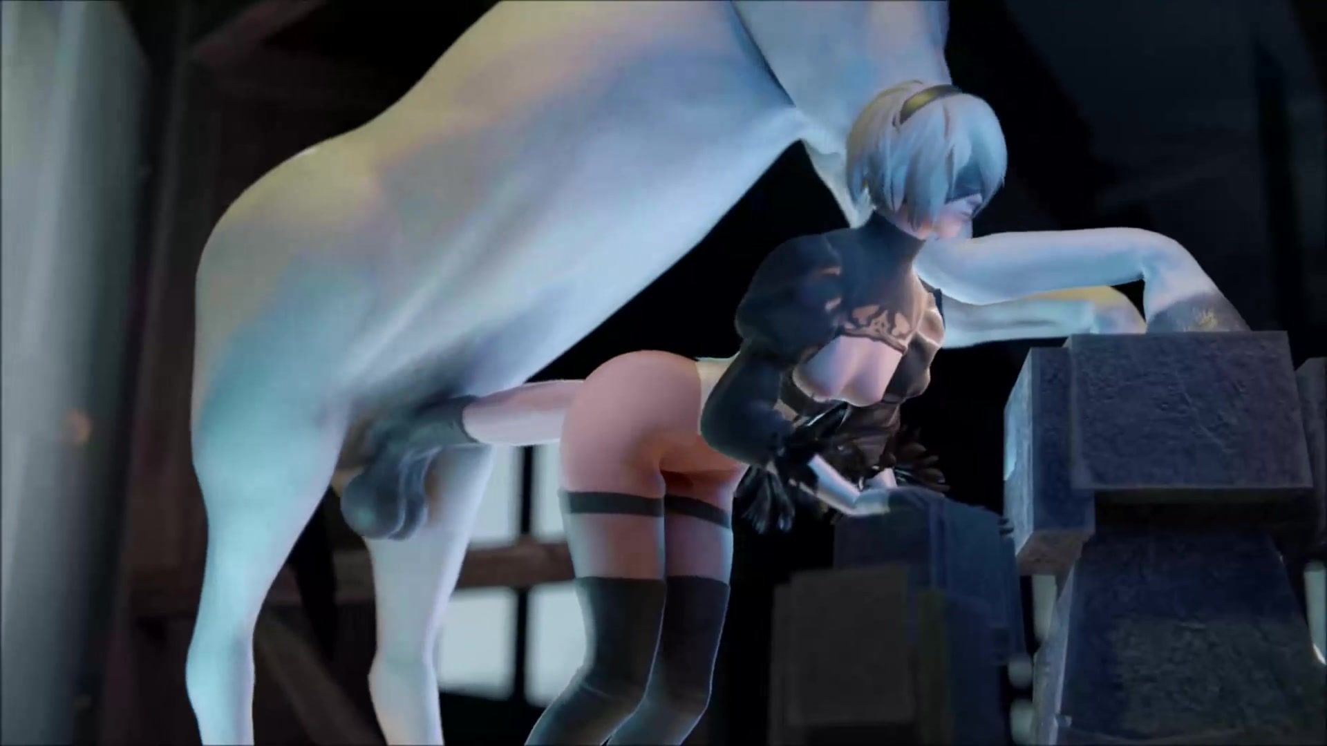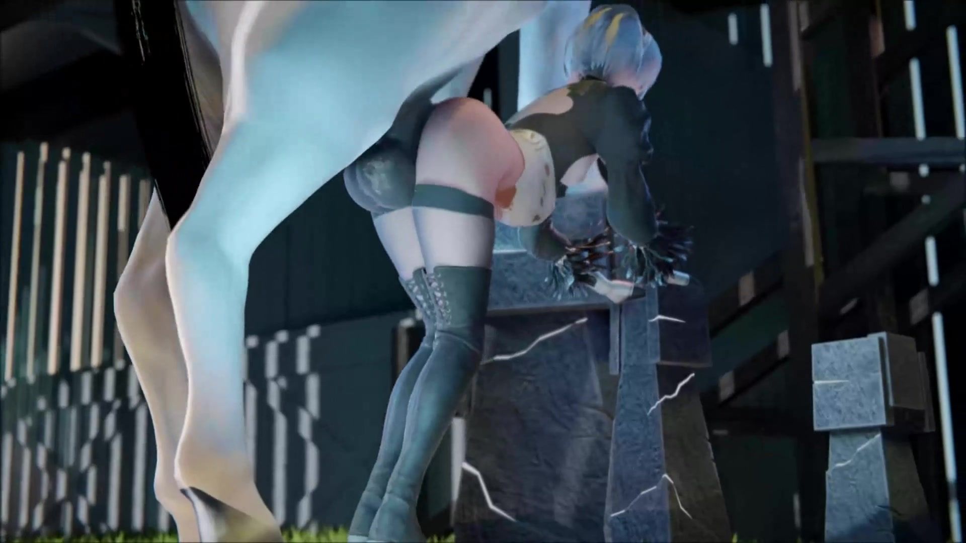 Pretty white horse demolished YoRHa No.2 Type B's asshole