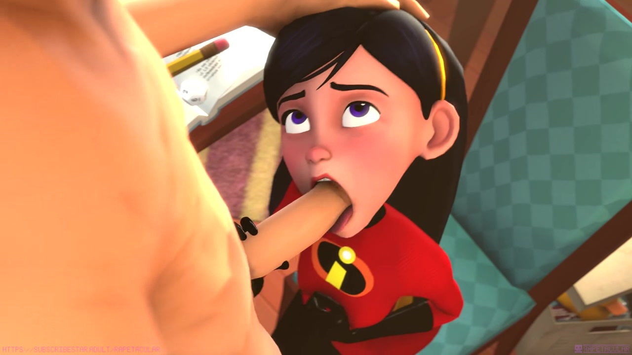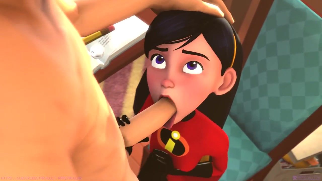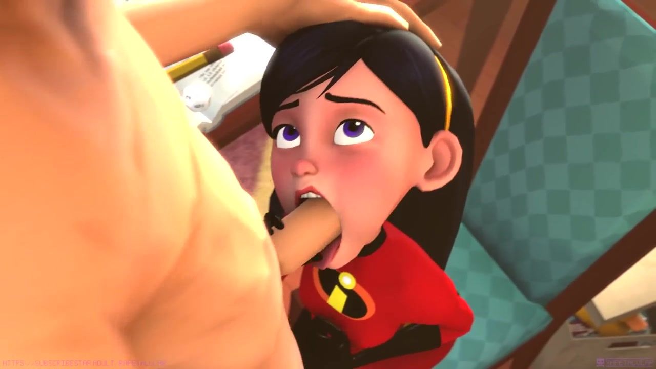 3d cutie Violet Parr fucked in her mouth with a big dick