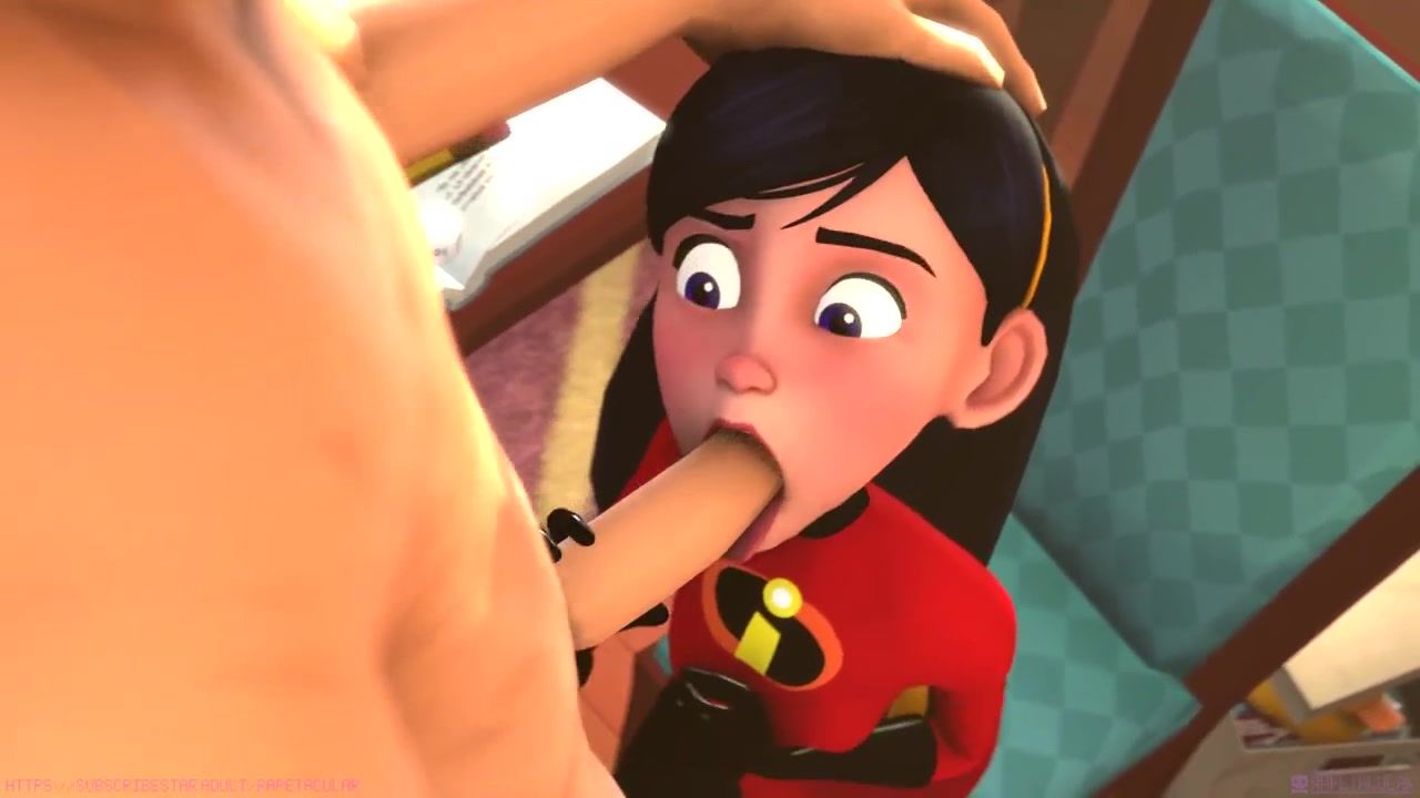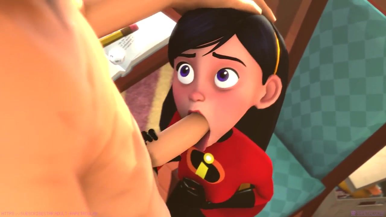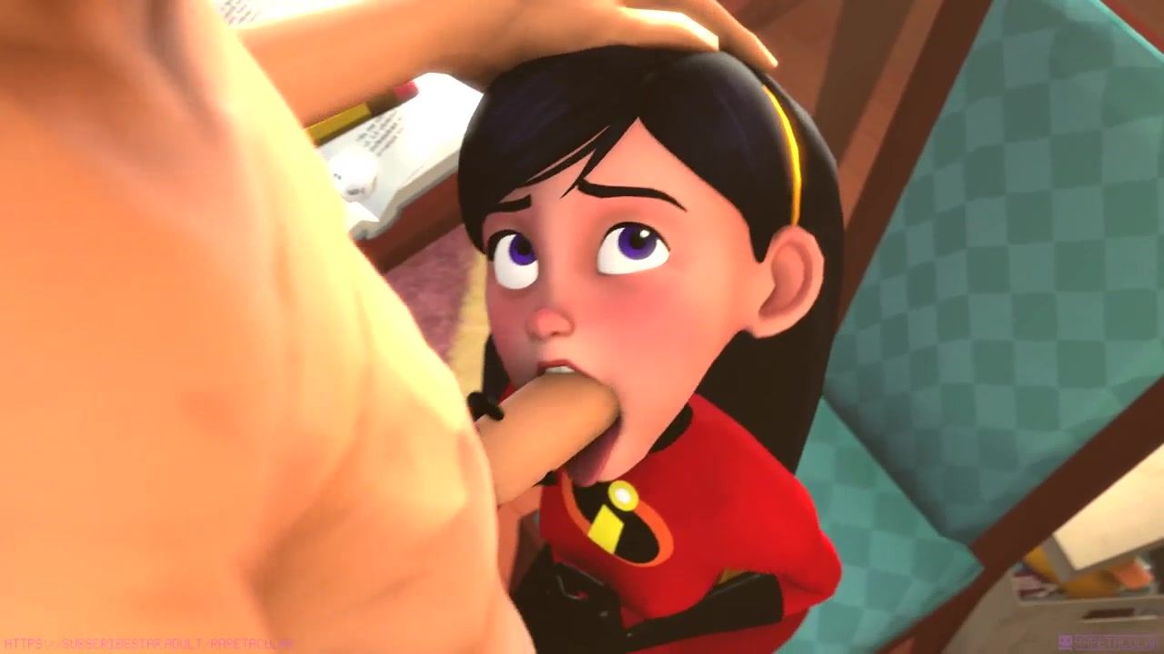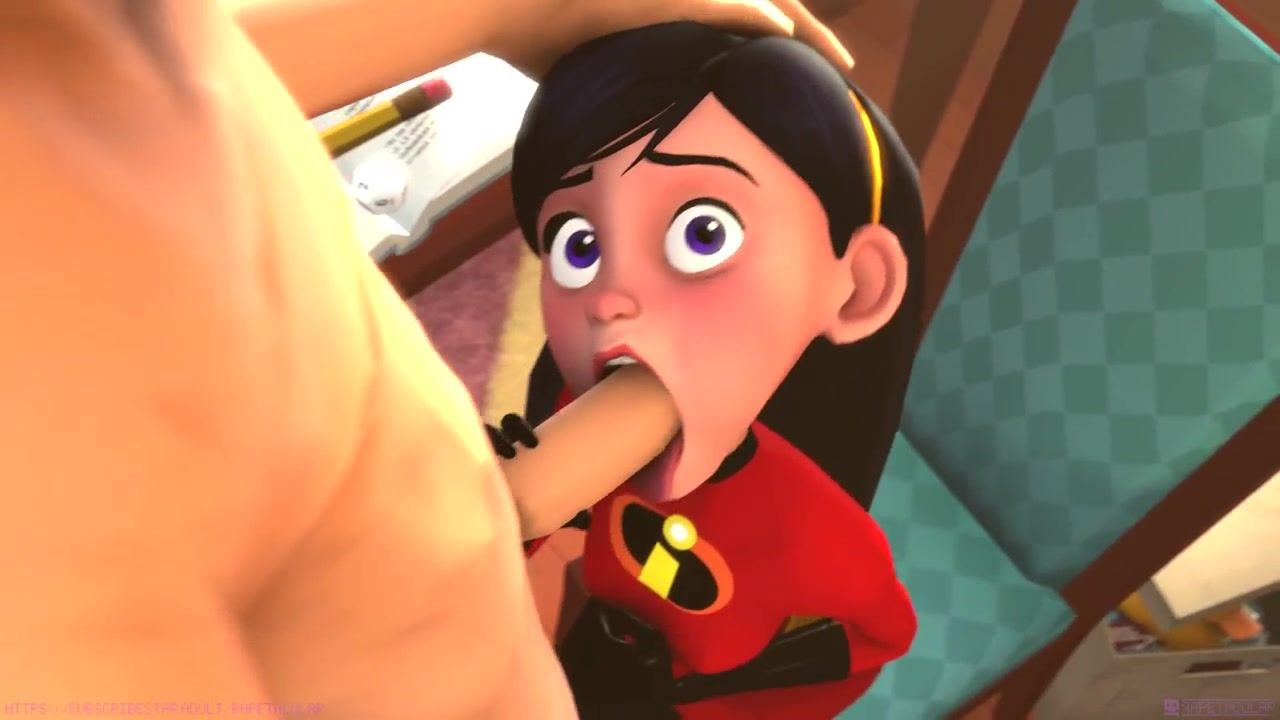 3d cutie Violet Parr fucked in her mouth with a big dick