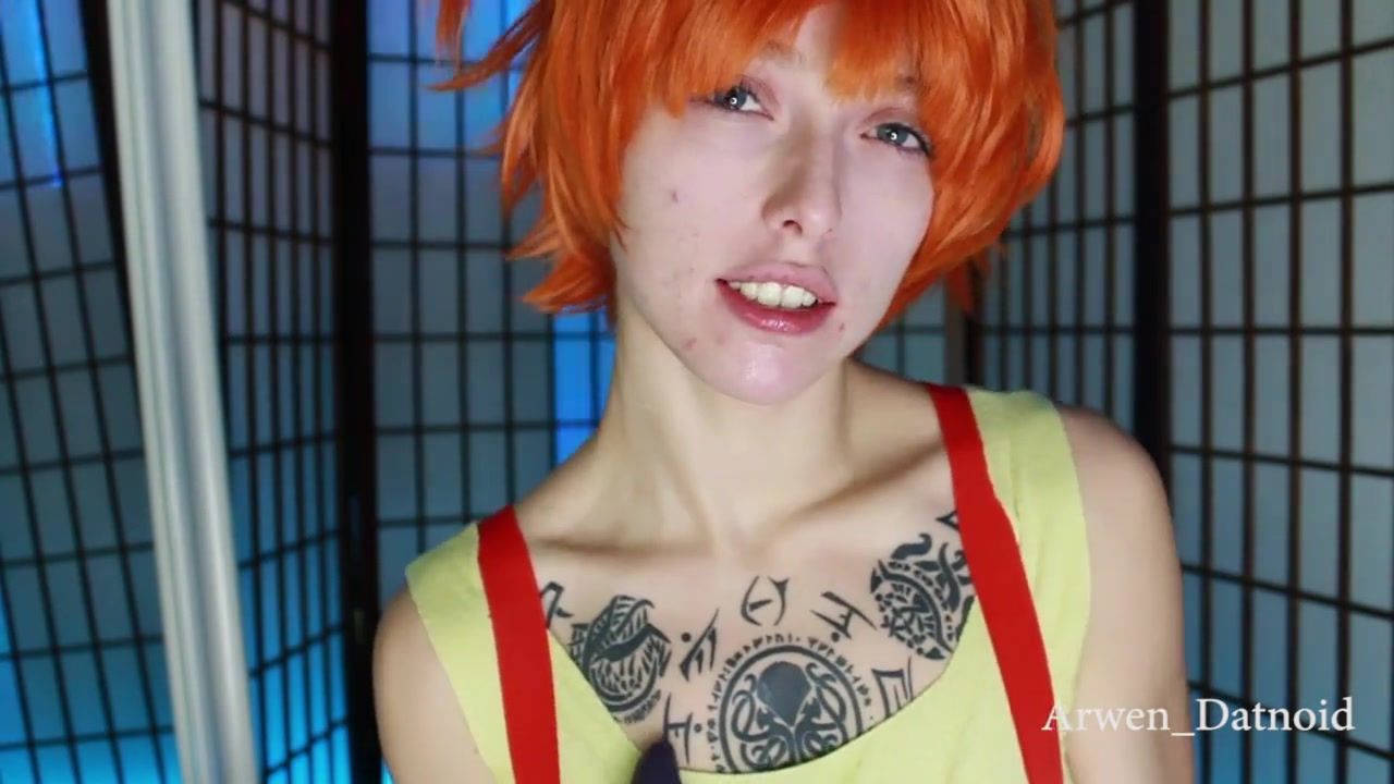 The cosplayer and webcam model turned into Misty from the cartoon Pokemon" and started masturbating with a couple of dildos. She inserted one dildo tentacle into her pussy, and the second penetrated her anal hole."