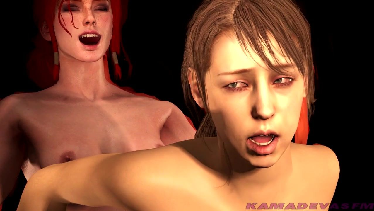 Quiet and Triss swallowing a fresh shot of juice