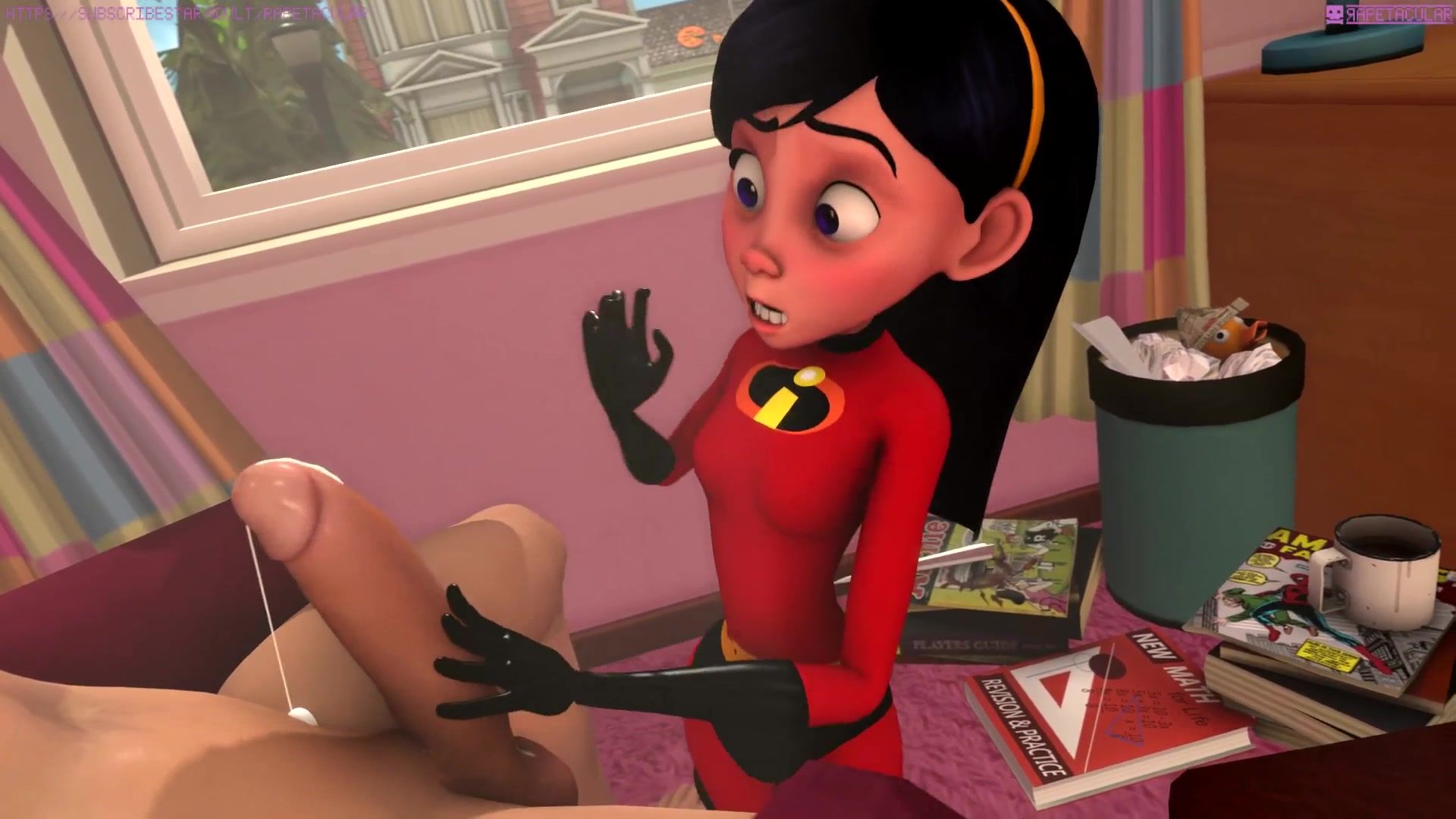 It's time for a young girl Violet Parr to learn how to handle a man's penis. Watch online how she jerks off her father to a powerful sperm ejaculation. The cumshot scared the girl, but she liked to hold such a big dick in her hands. The Incredibles is when your daughter jerks off your cock and gives you pleasure.
