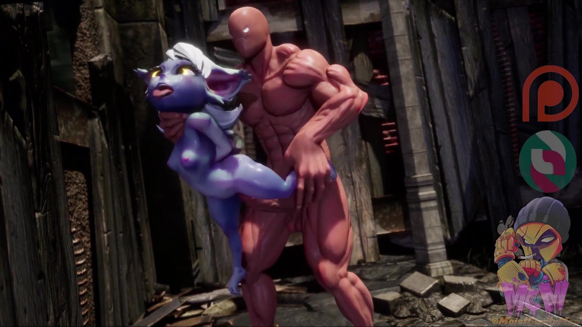 Little Tristana gets choked & fucked by a muscular 3D monster