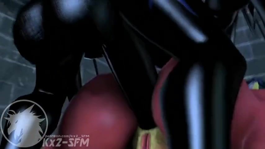 Black security guard in 3D cartoon fucks thief's girlfriend in front of him