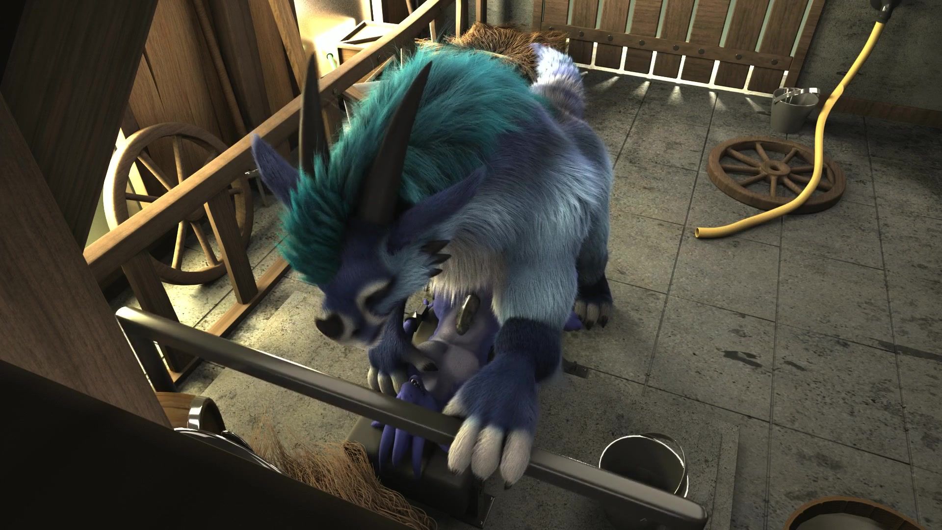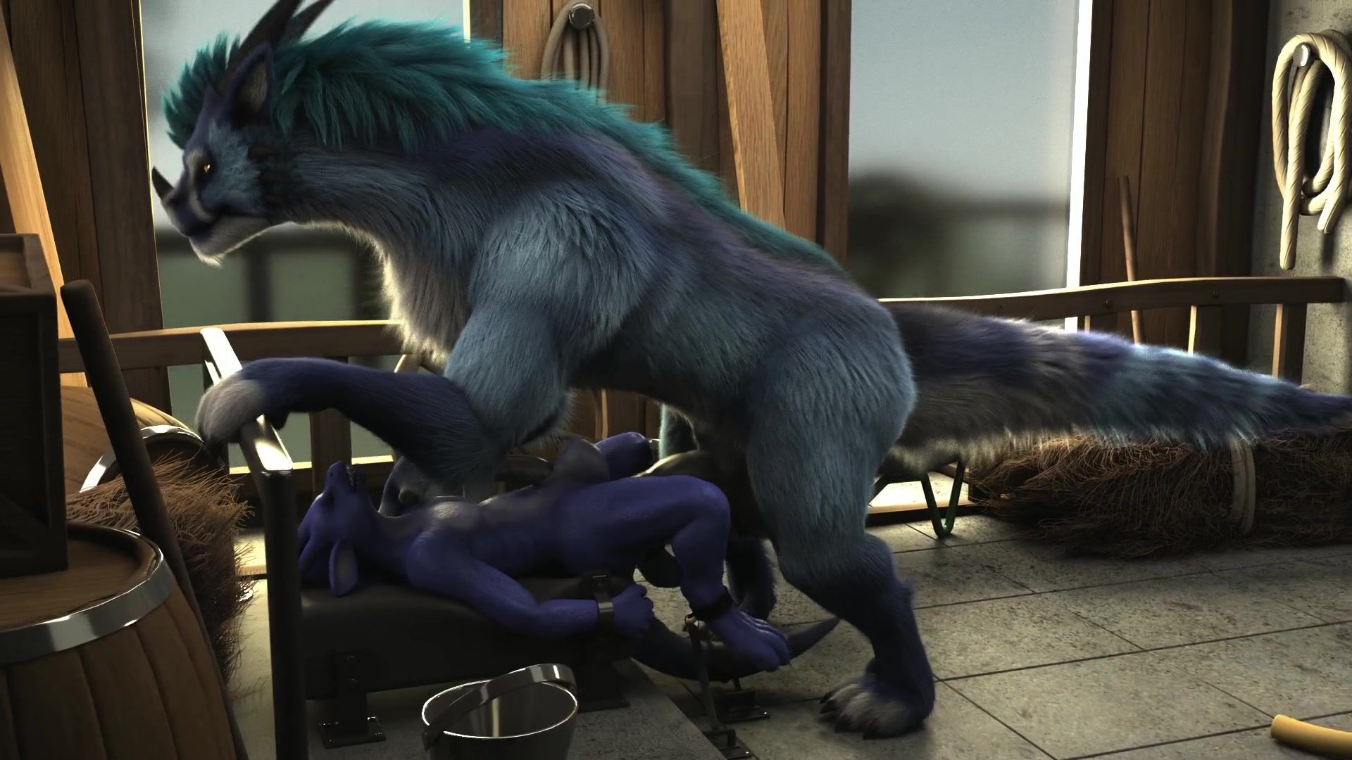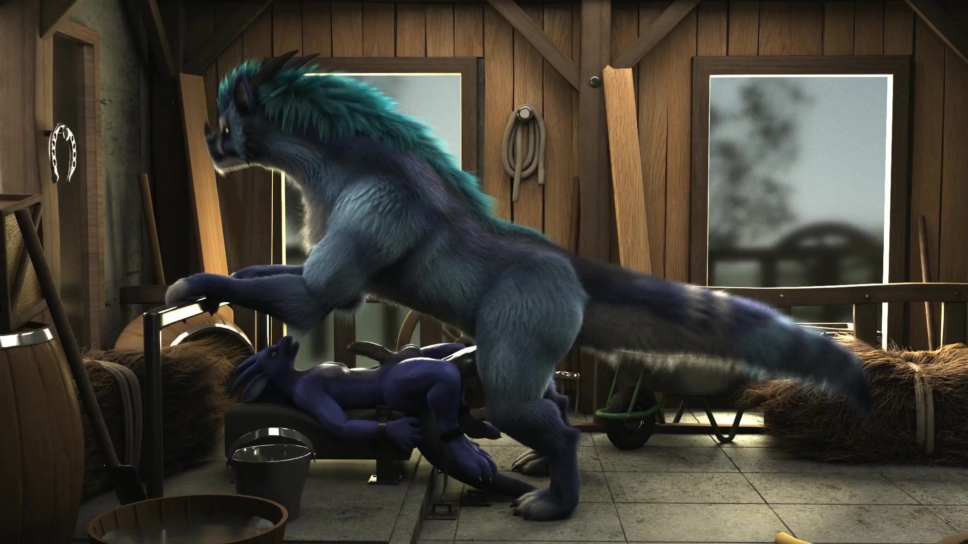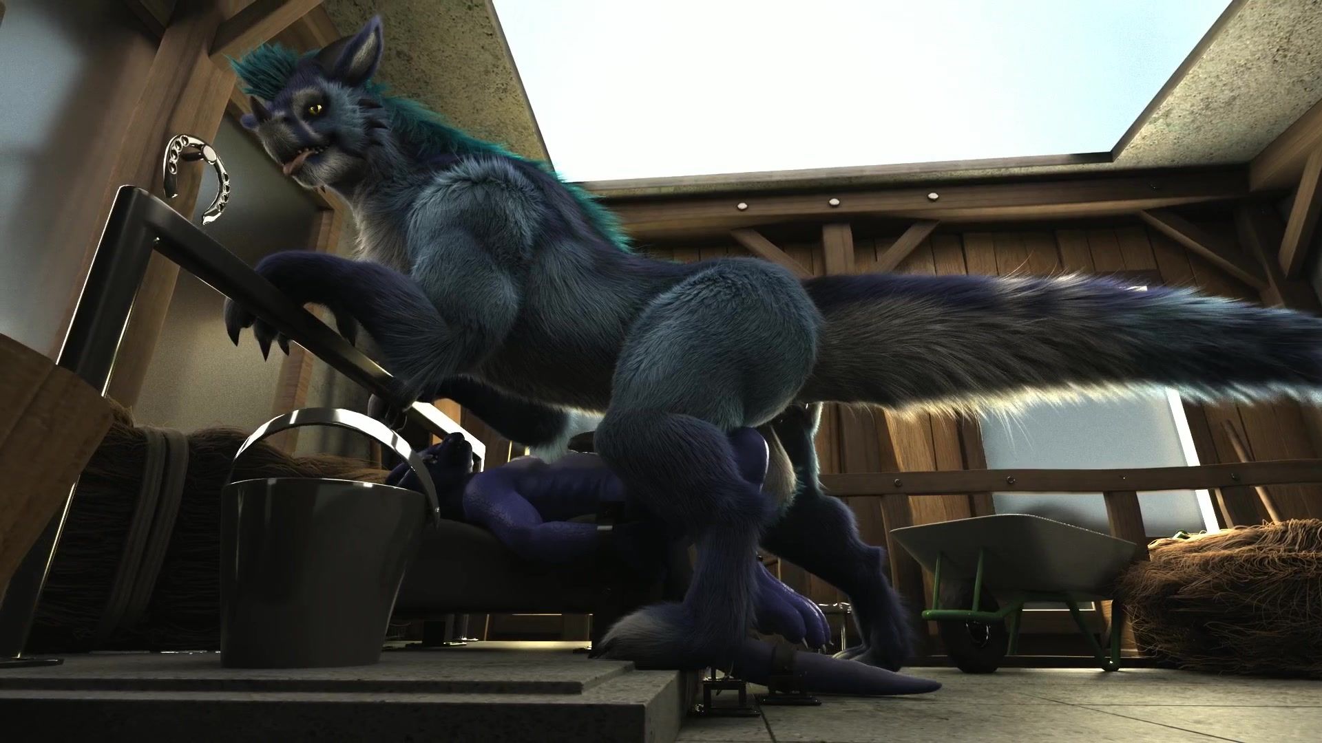 Furry animal embedding his hyper penis inside his lover's ass