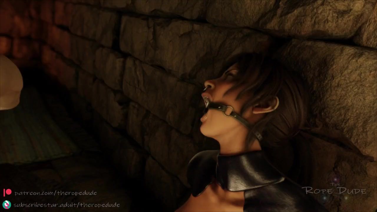 Ball-gagged Lara Croft gets face fucked