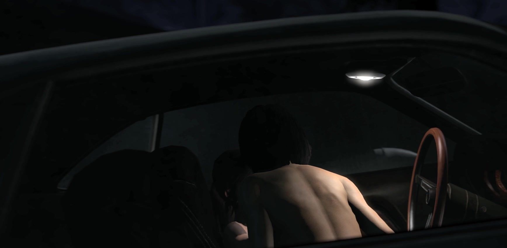 Lara Croft masturbates in a car in a traffic jam