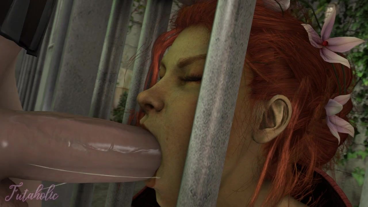 Girl with a cock fucks deep in the mouth of a redhead in a cage (Batman)