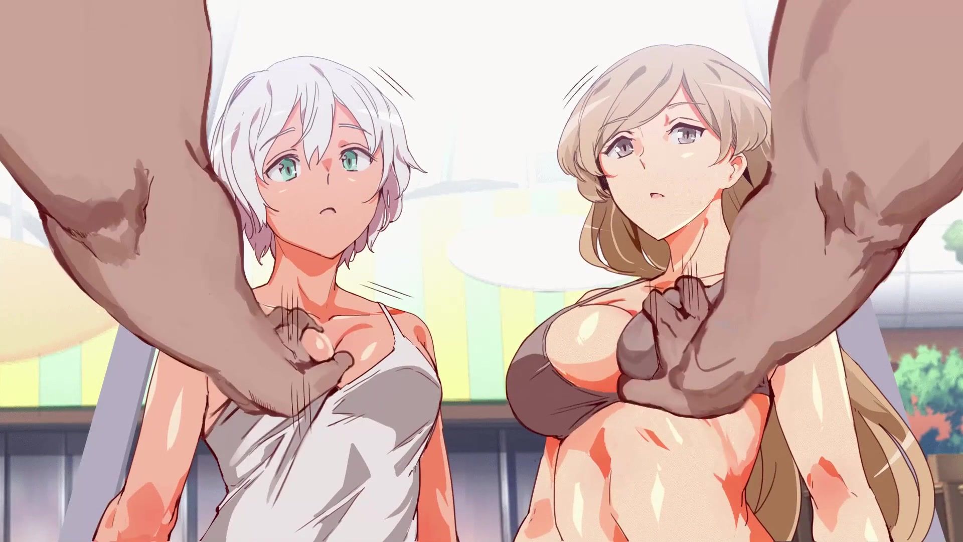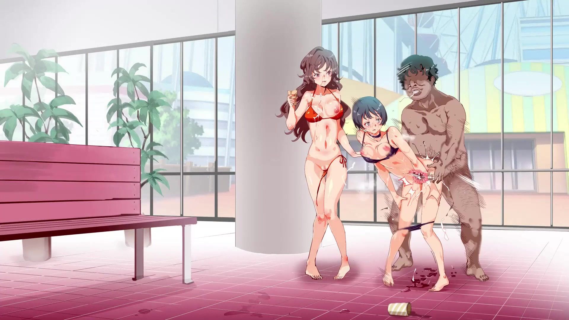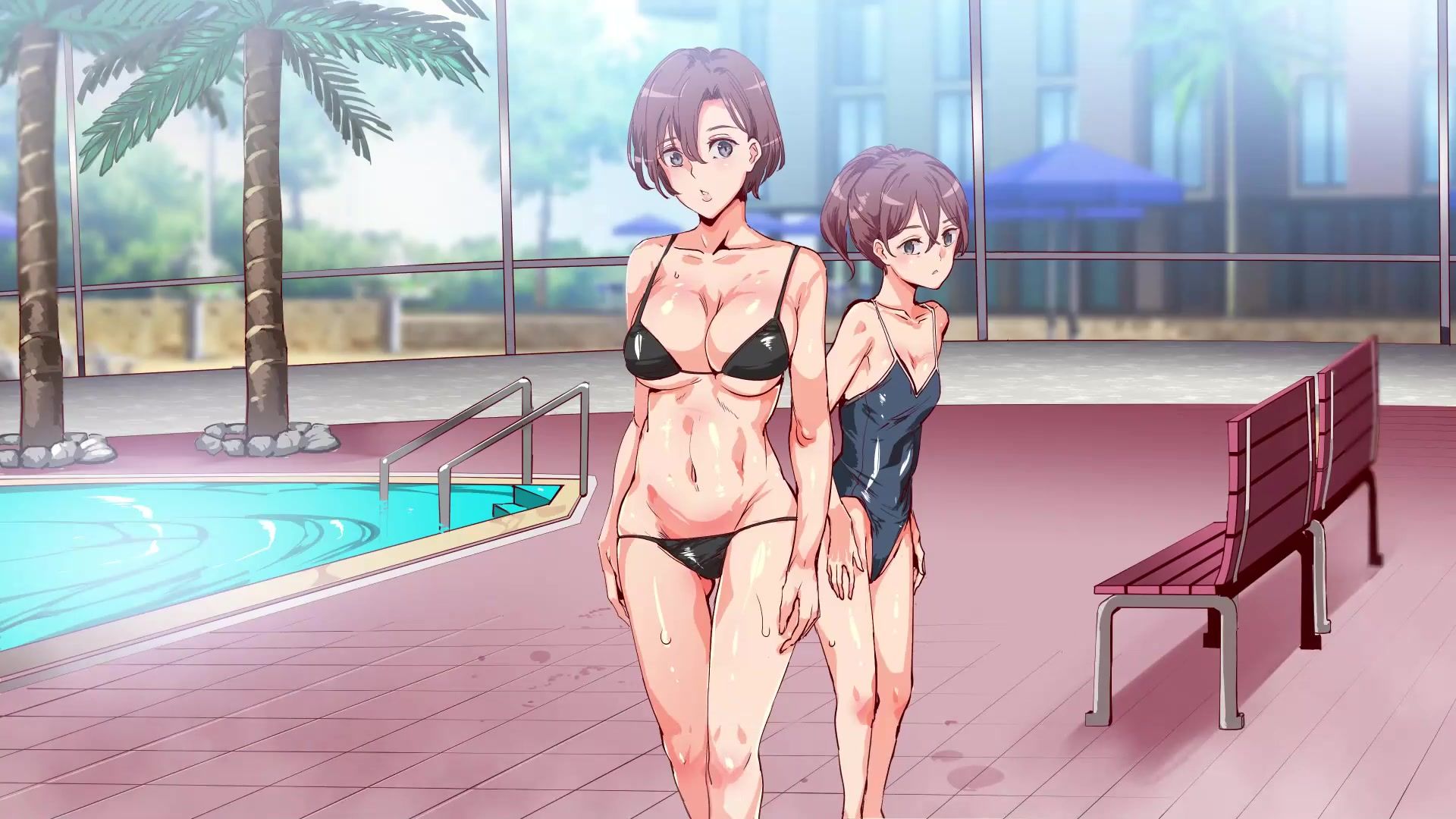 Tanned guy fucks young anime girls by the pool