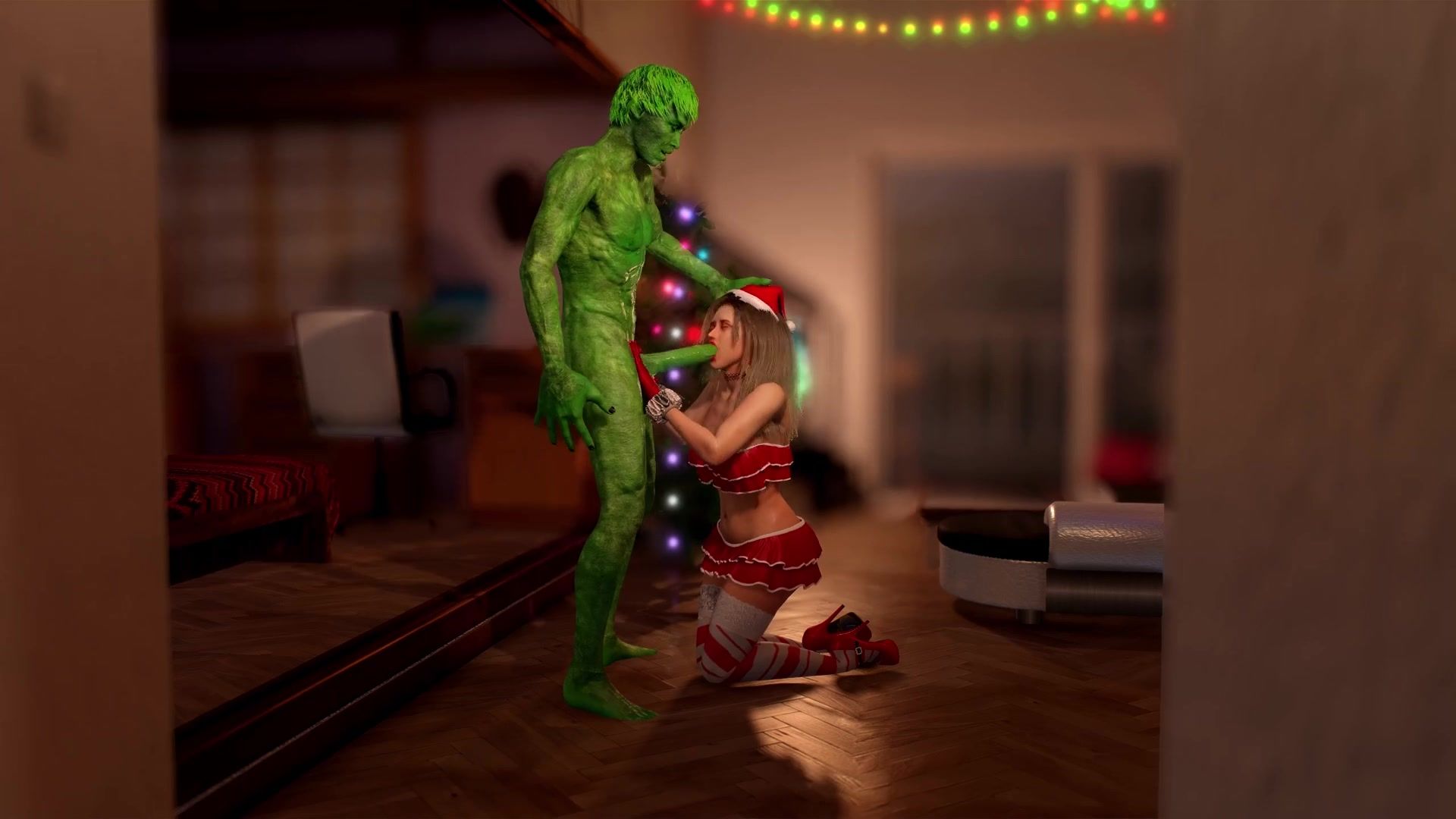 The grinch kidnapped christmas and fucked a sexy snow maiden in the mouth