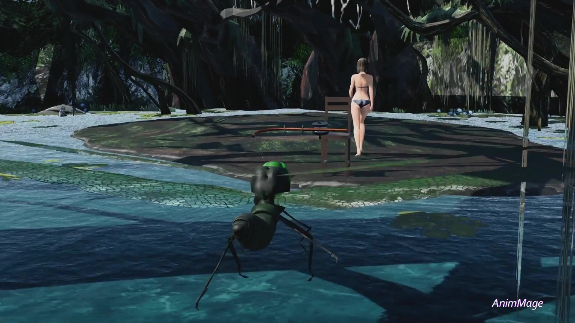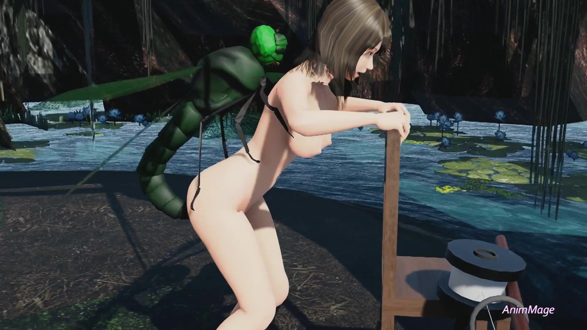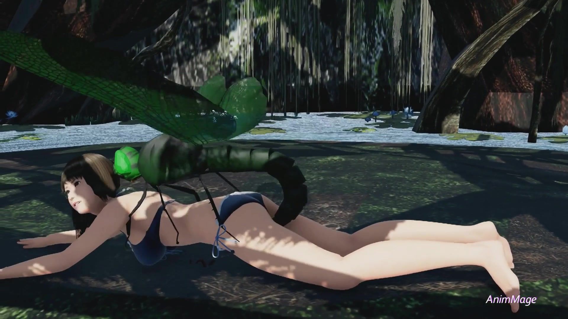 A giant dragonfly fucks a young beauty in a swamp