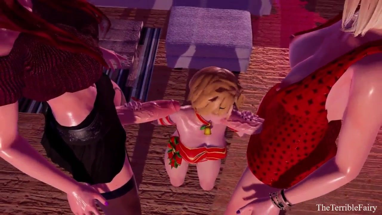 Petite Blonde Sucks Big Futanari Cocks
