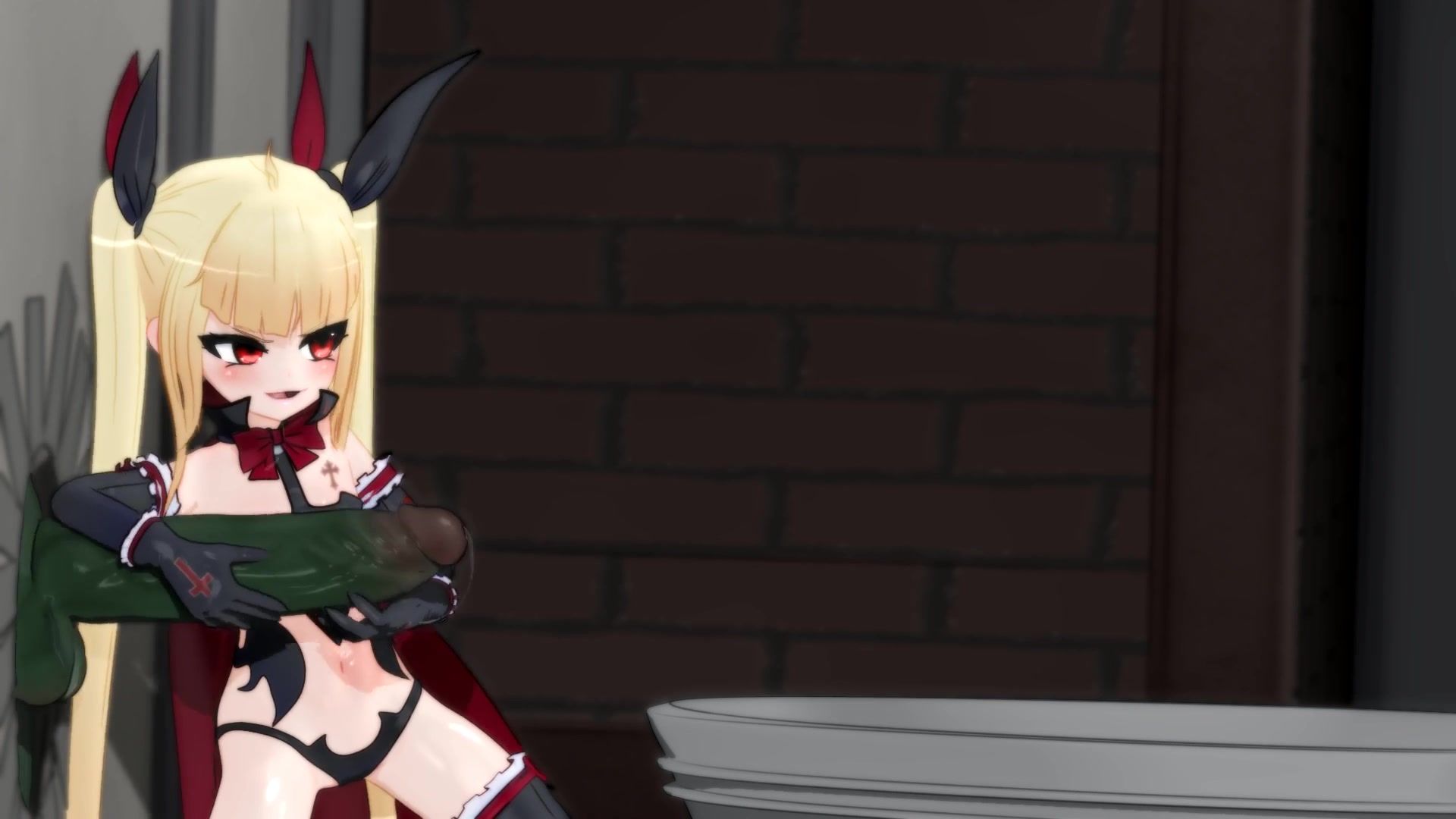 Dark nun with futanari dick fucks pretty girl in ass in 3D porn cartoon