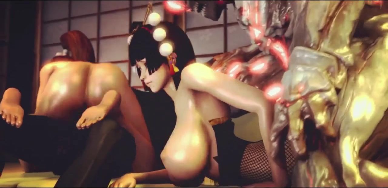 The vampires from the hentai cartoon filled the asses of the two girls with cum