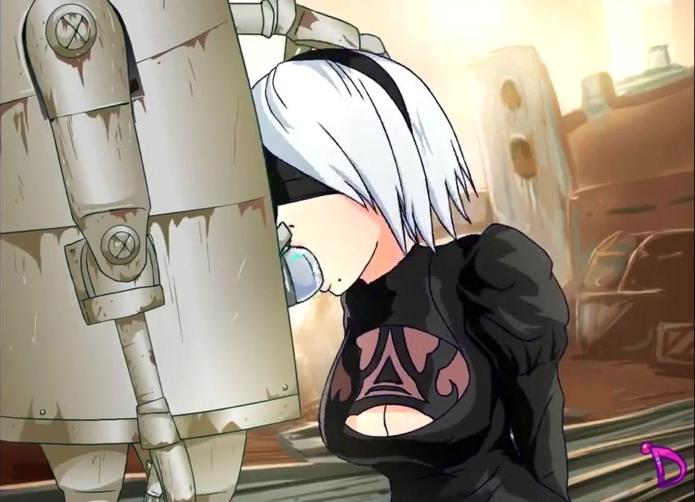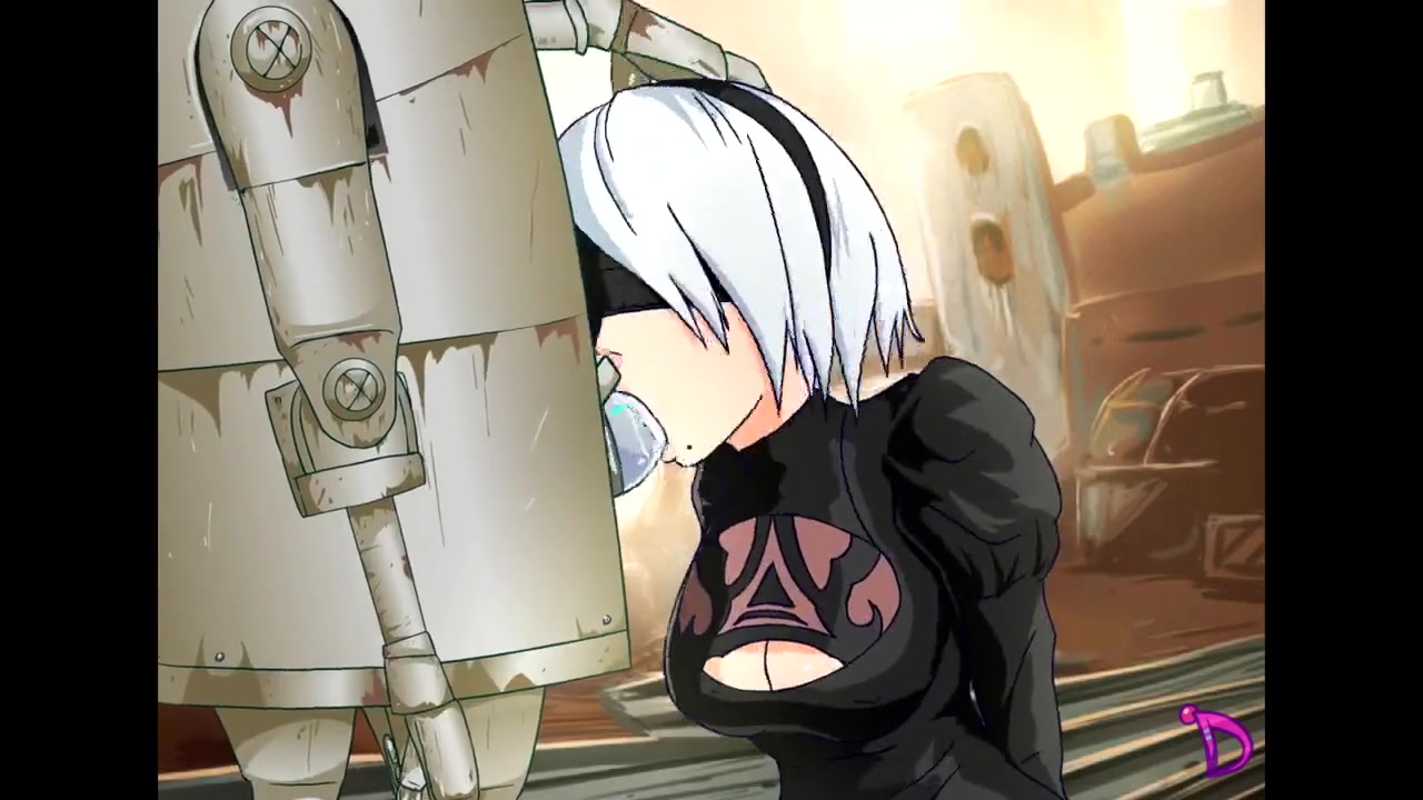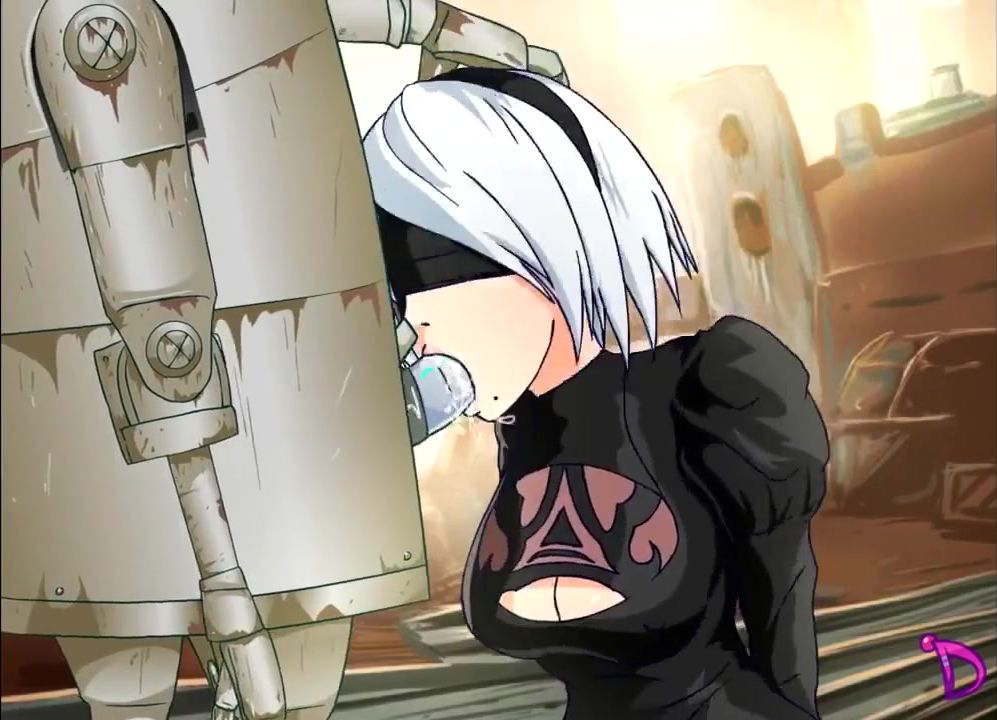Big metal robot fucks in mouth and shaved pussy YoRHa 2B