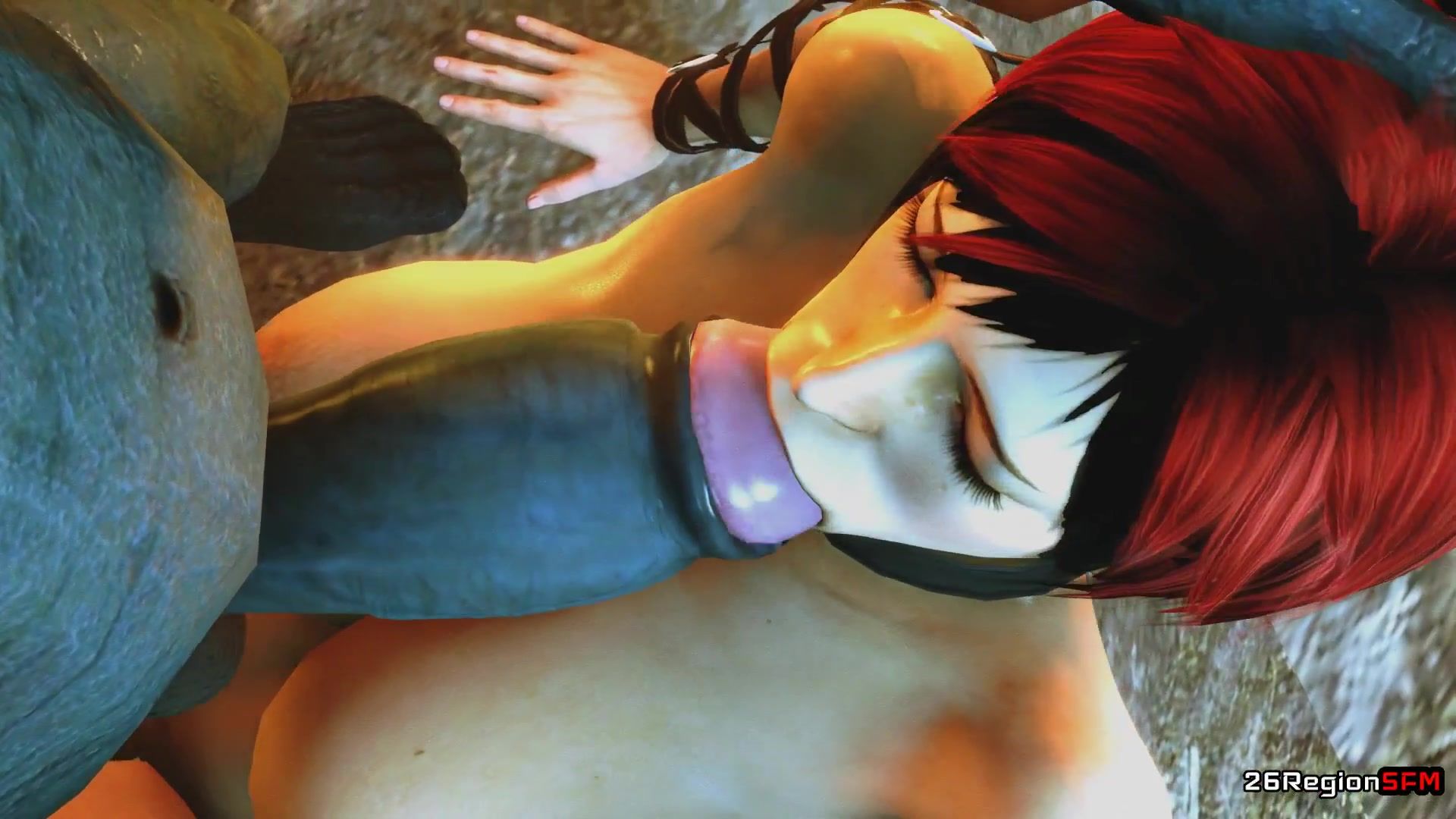 Big dick goblin rapes a redhead girl in the mouth