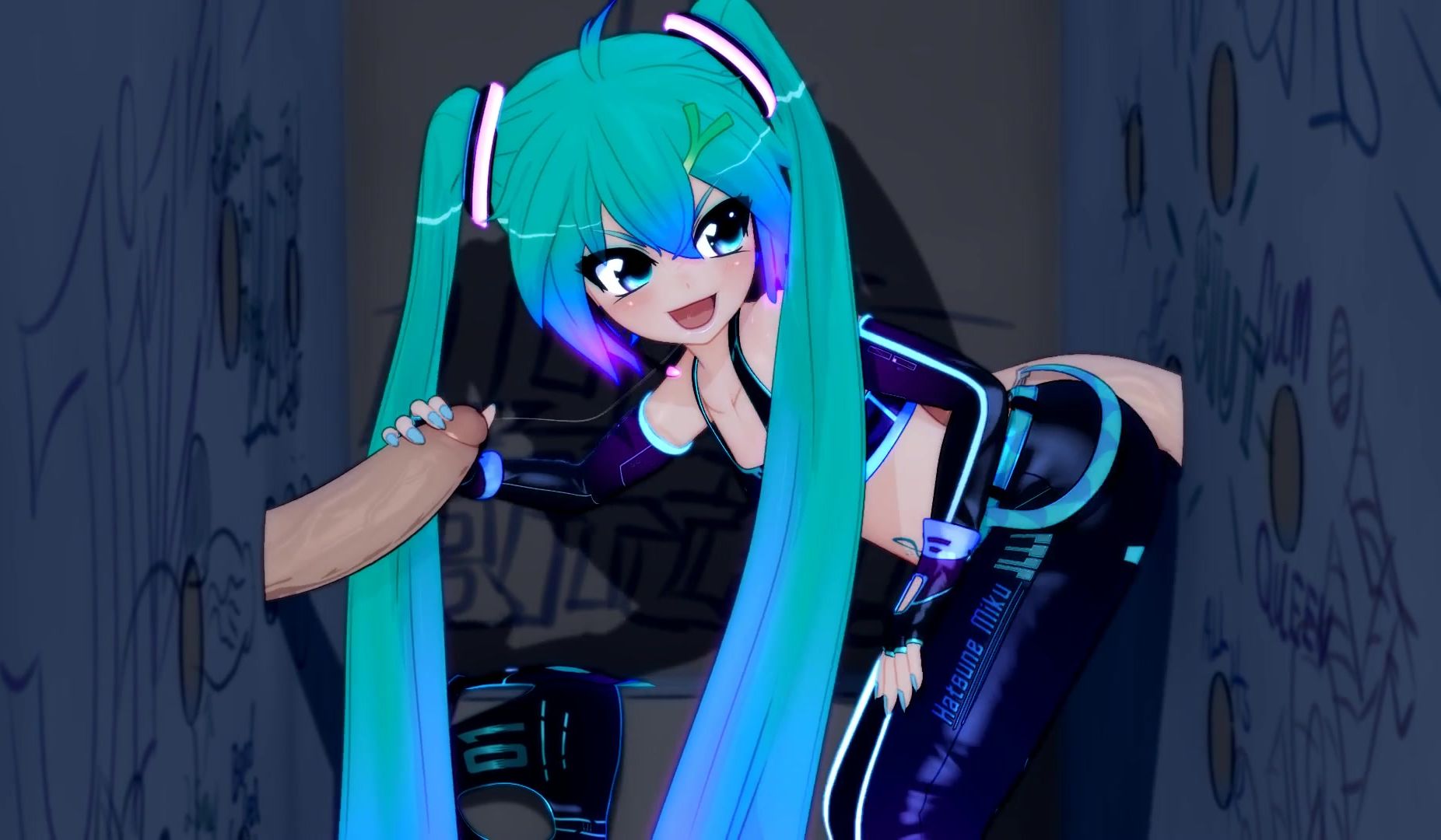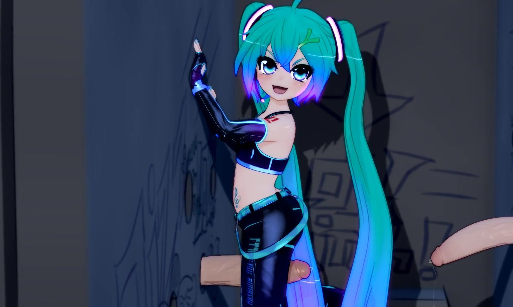 This 3D animated porn video features Anime girl Miku as she sucks dicks and fucks through a gloryhole. She starts off with a double handjob, giving both of her partners the ultimate pleasure before moving onto an assjob. She then slides through the gloryhole, taking turns getting fucked hard from both ends. The animation brings Miku's wild moves to life in all their glory, as she continues to pleasure her partners with her expert moves.