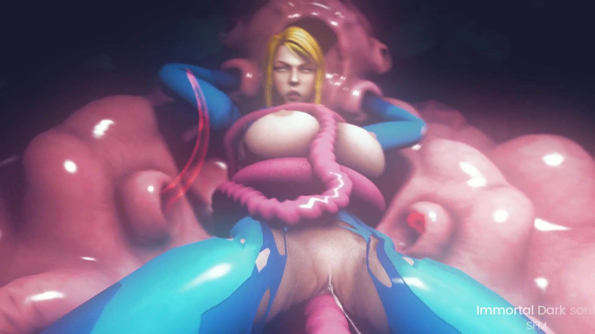 Busty blonde Samus Aran is raped by monster tentacles