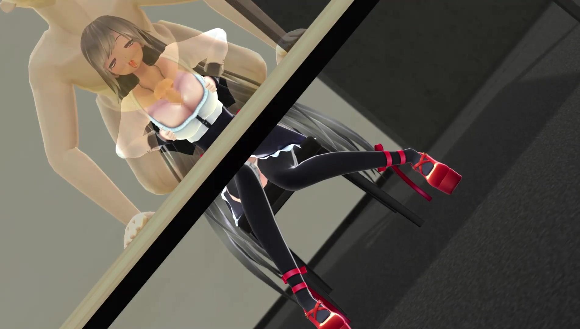 Long haired anime student jerking off and fucking after class