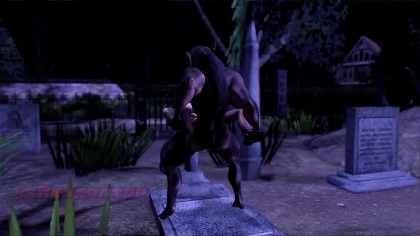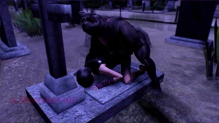 The monster tore the pantyhose and raped the vampire in the ass in the cemetery