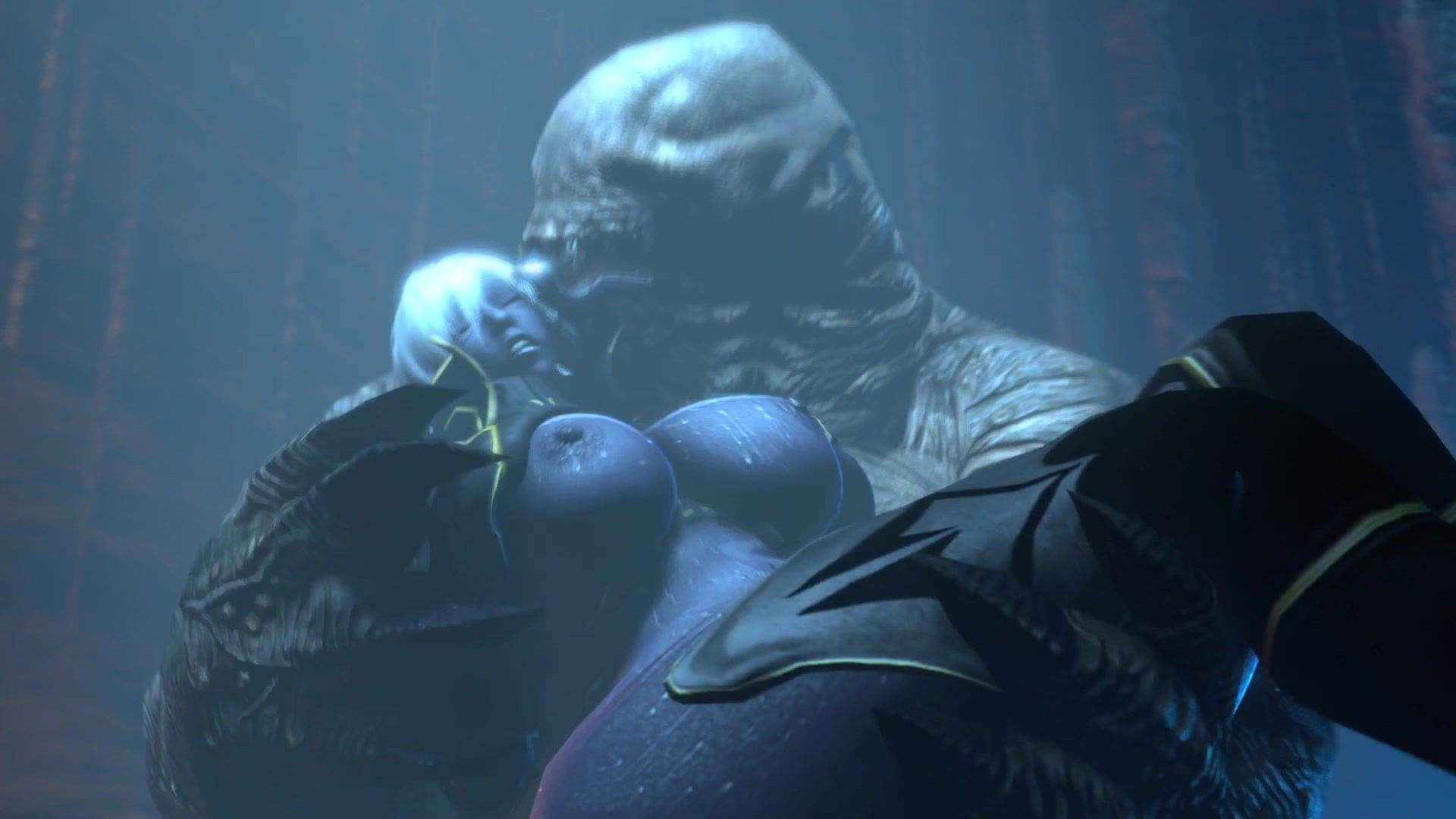 Huge monsters fuck Lara Croft hard with big dicks