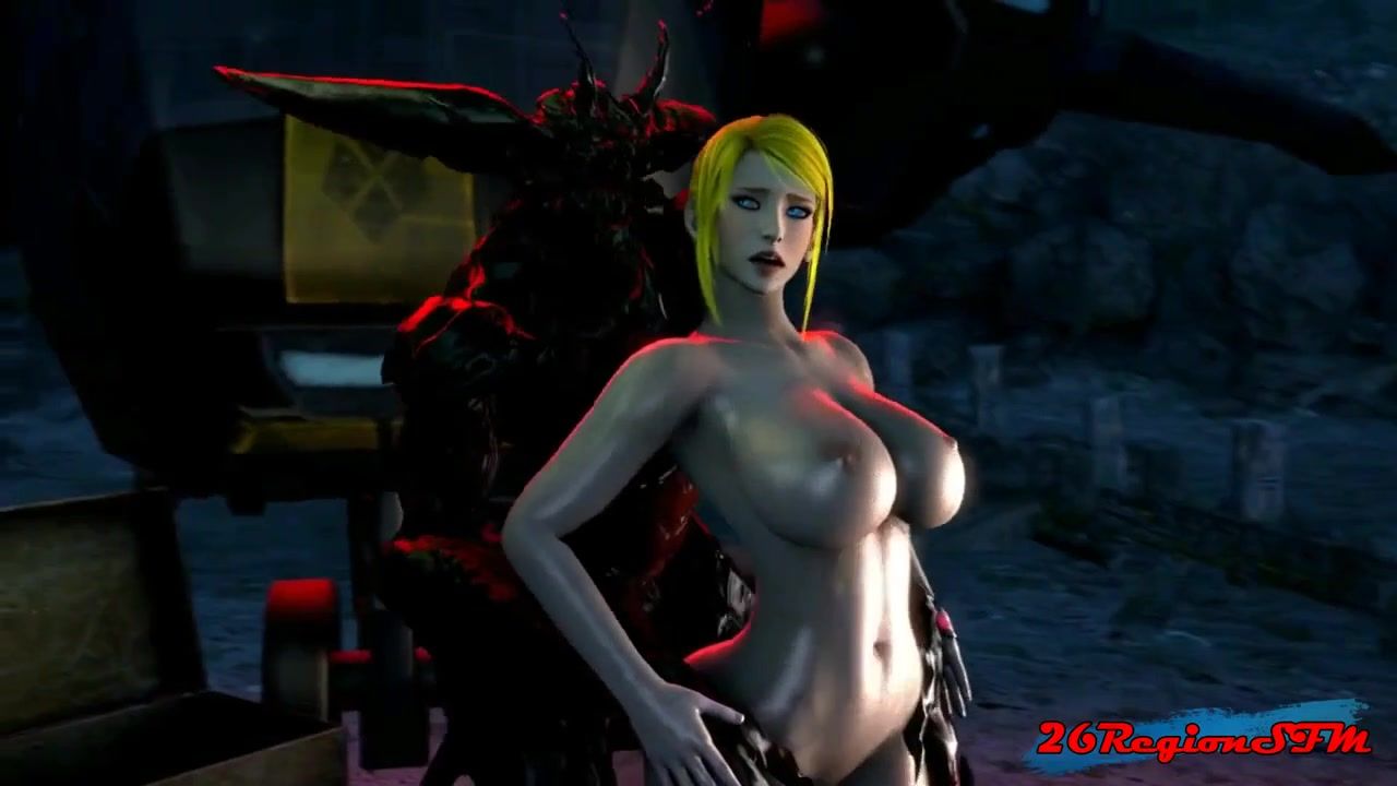 Huge demon forcing anal sex with cartoon blonde Samus Aran