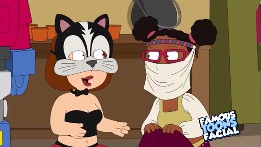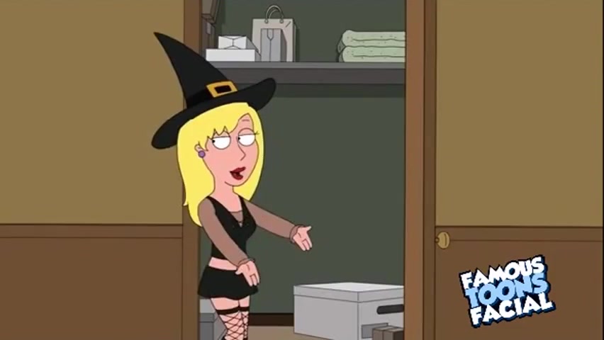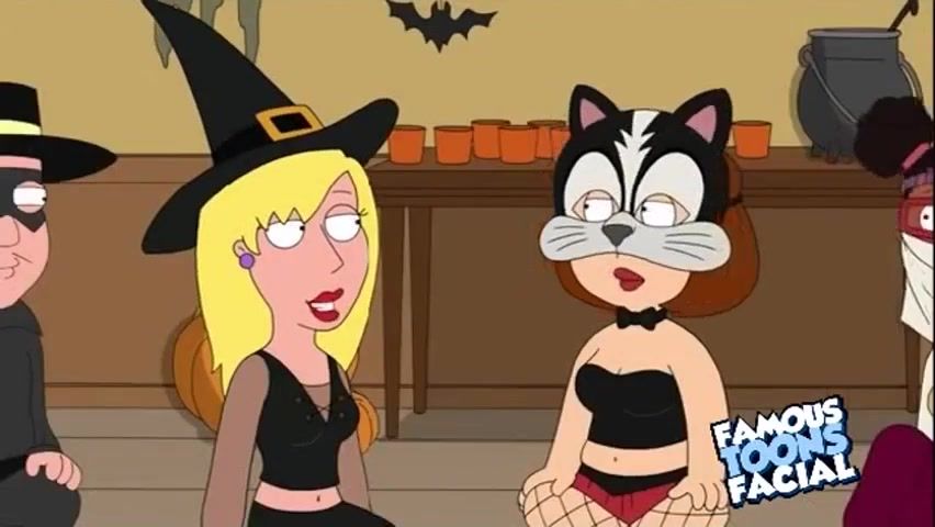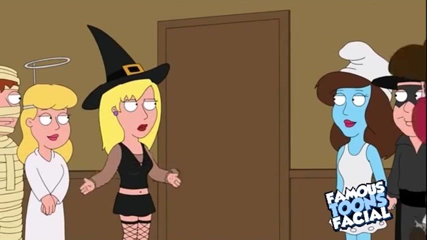Brunette Meg Griffin gets gagged with cock at Halloween party