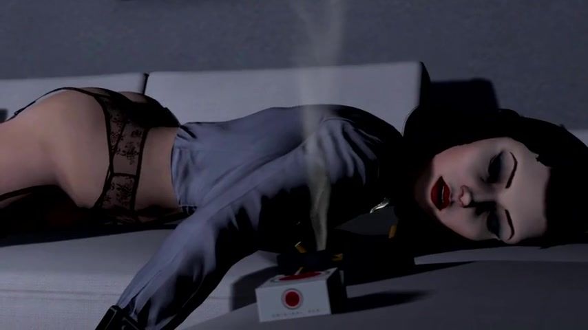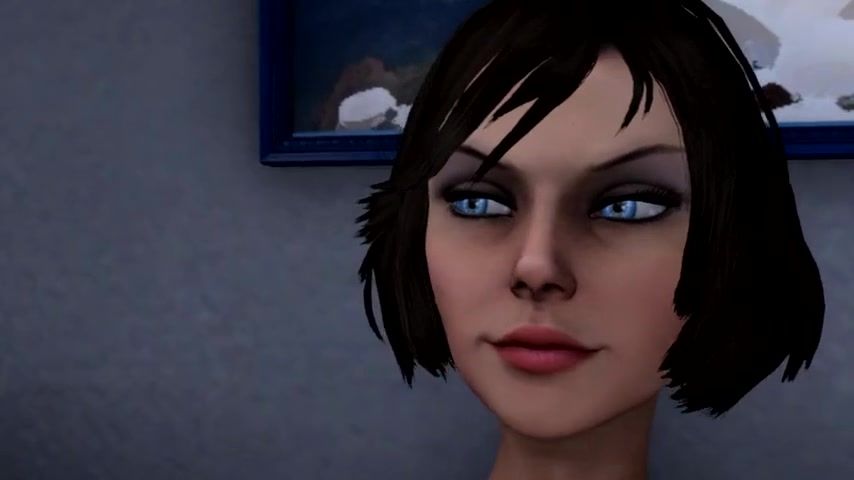 Futanari brunette Elizabeth Comstock wants sex and fucks herself in the mouth