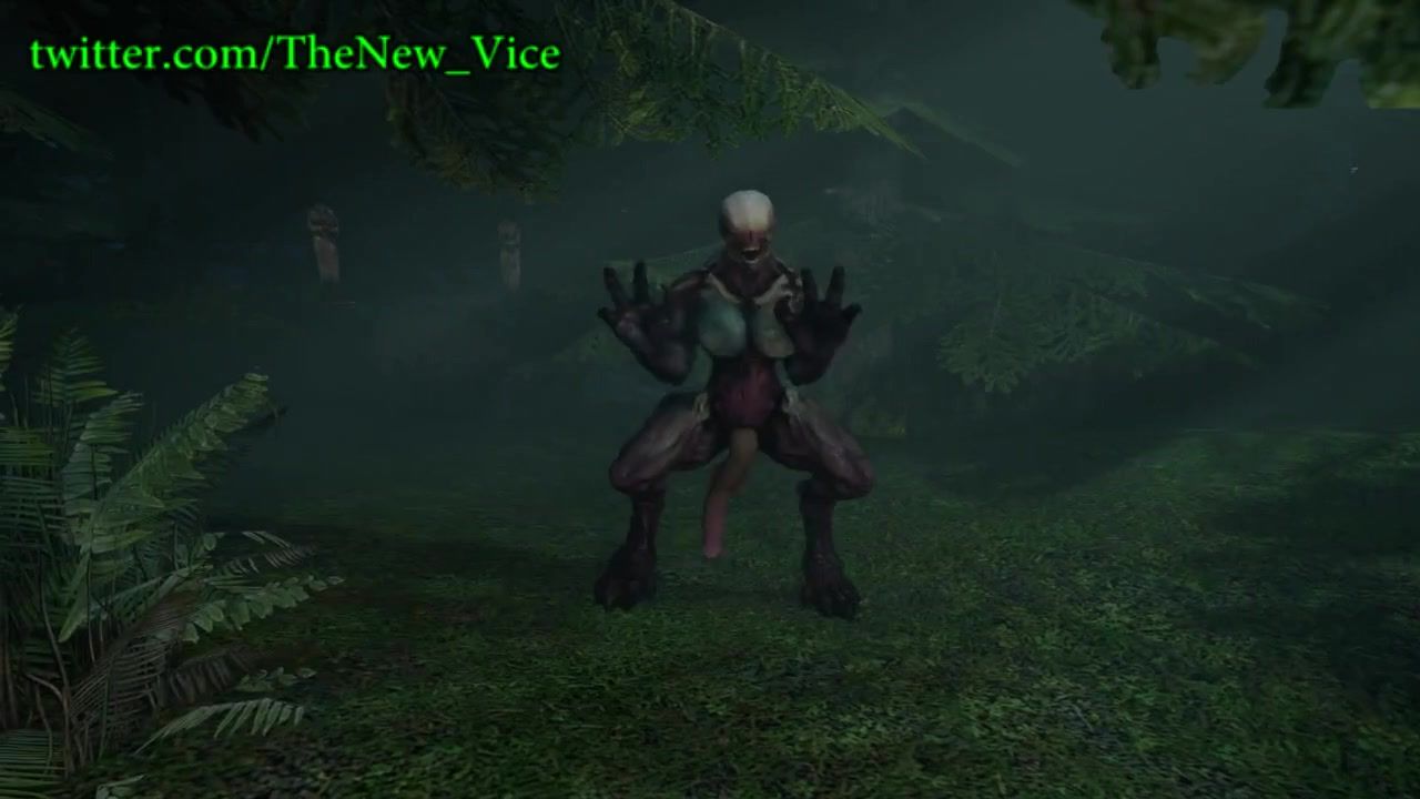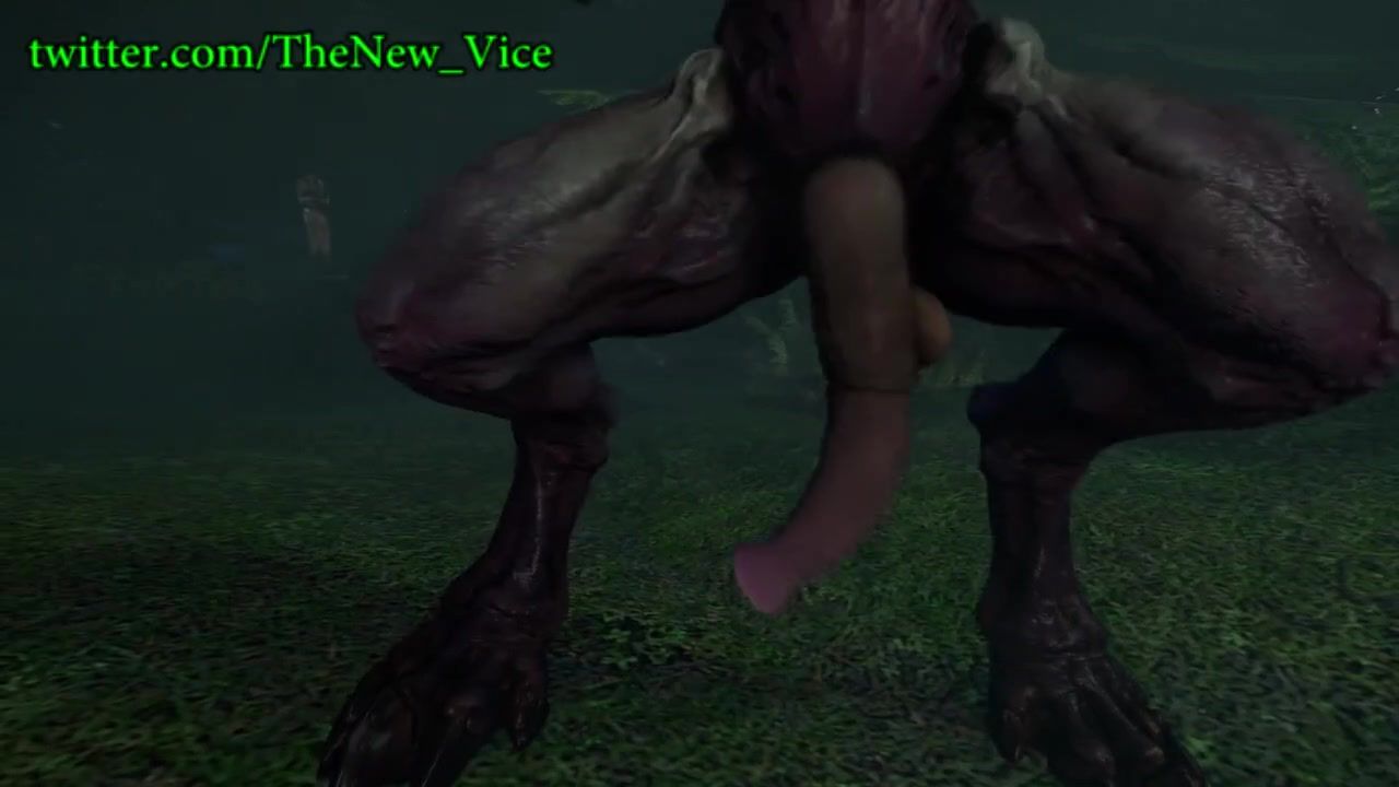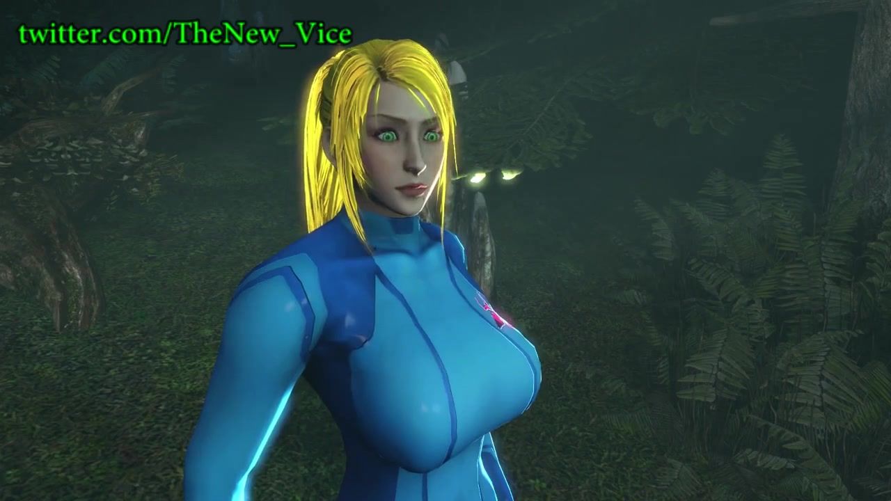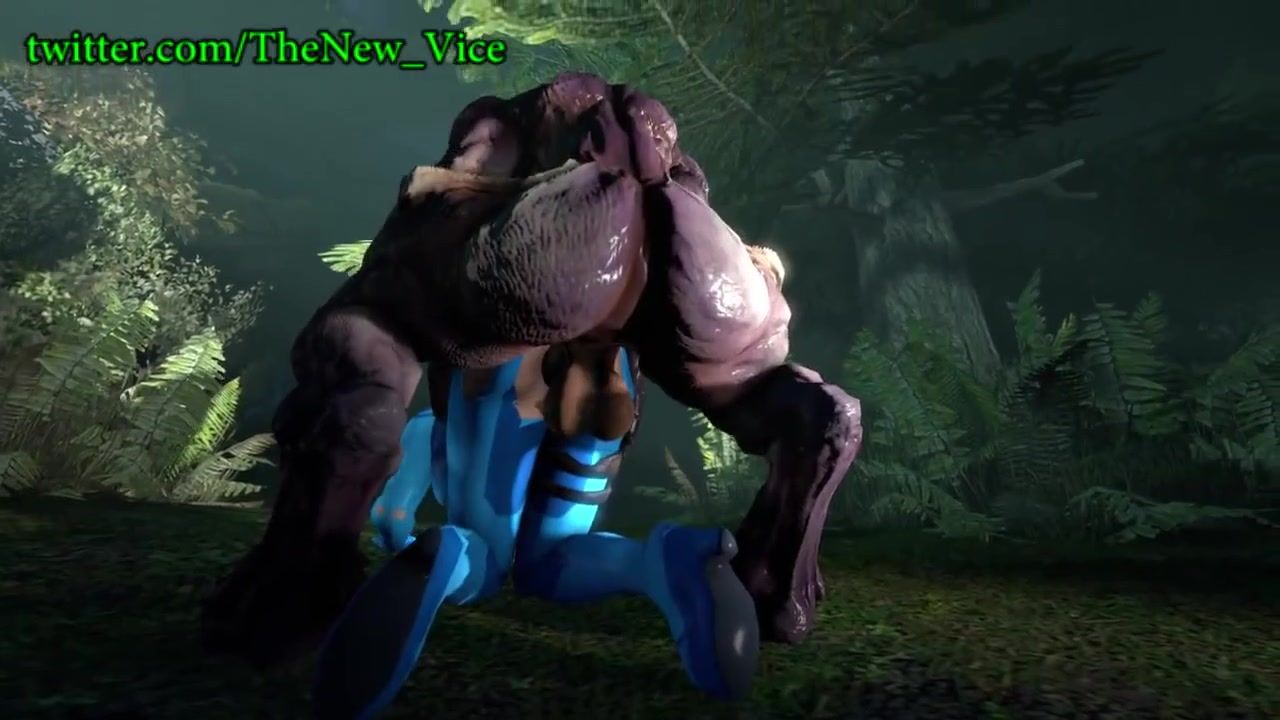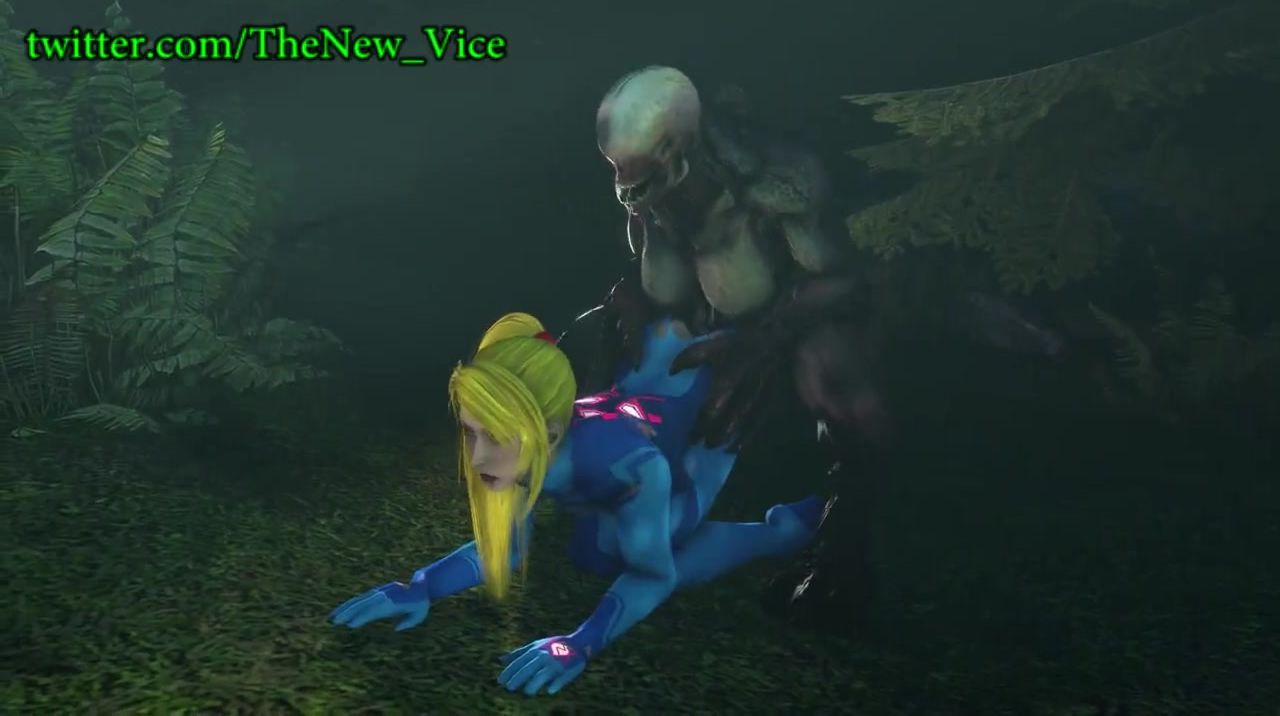 Blonde Samus Aran gives herself to a scary monster in the forest