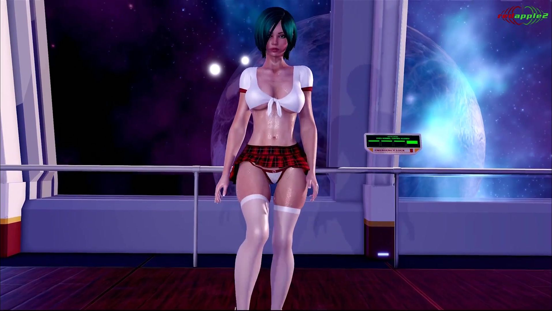 A cartoon slut in a skirt dances a striptease and sits on your booty cock