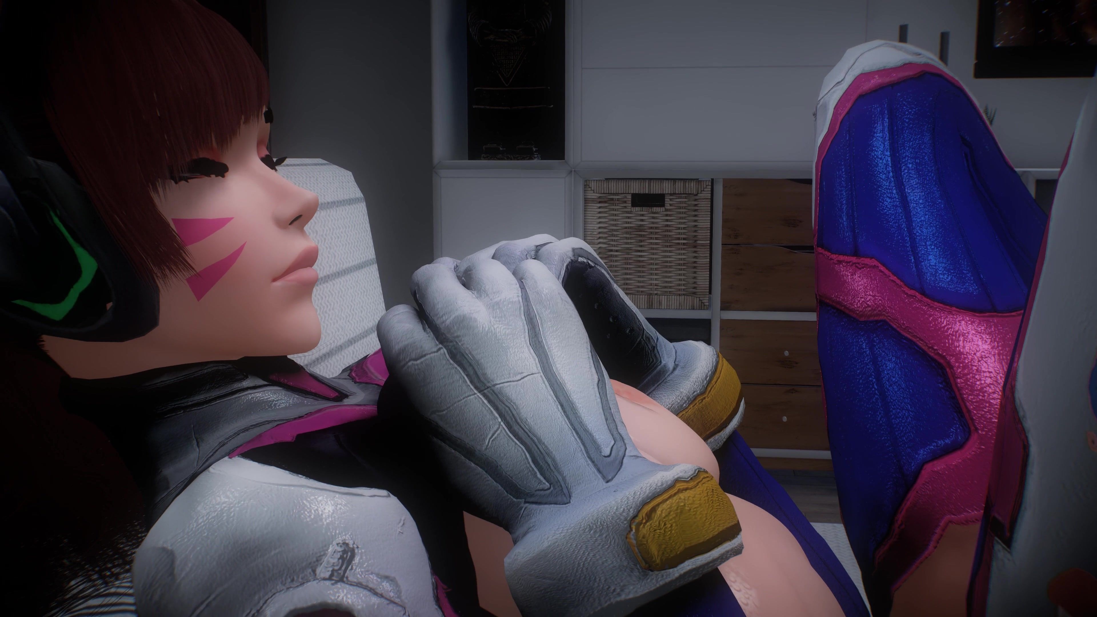 Beauty D.Va from Overwatch spreads her legs and gets a creampie