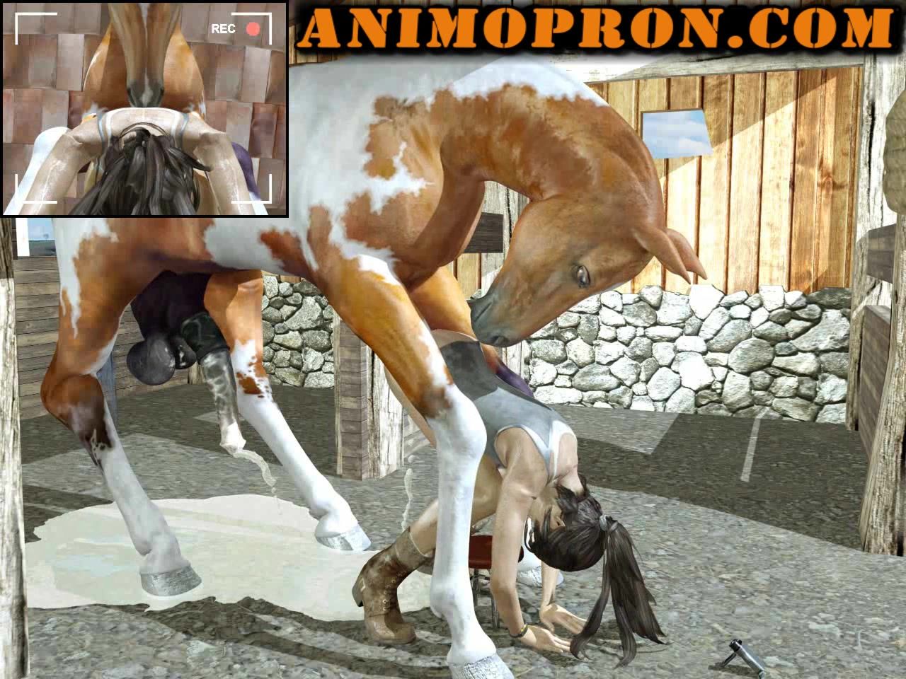 Horny horse with big balls gets butt fucked by beauty Lara Croft