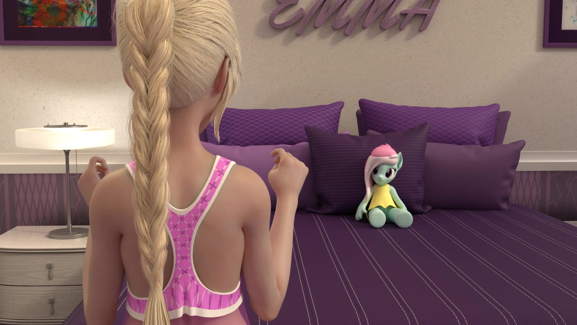 Masturbating futa blonde fucks a stuffed toy "My little pony"