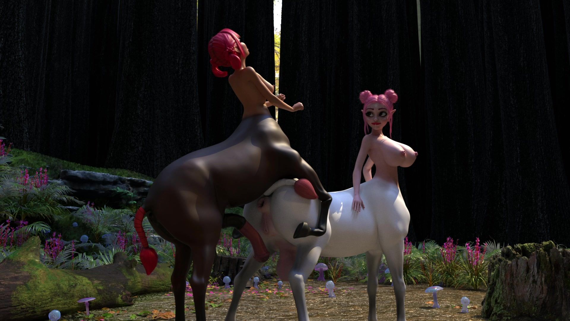 Centaur girls fuck each other with big horse cocks