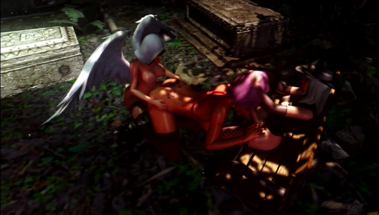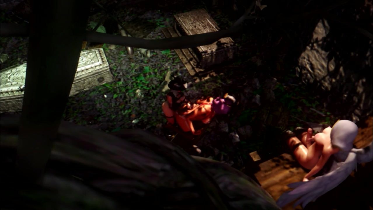 Futa Angel, Succubus and Witch have a great outdoor threesome
