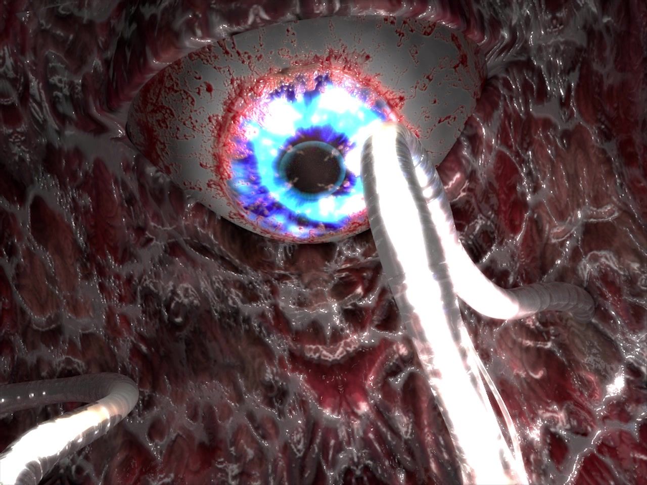 One-eyed monster shoves tentacles in the girl's cunt and fills her with sperm