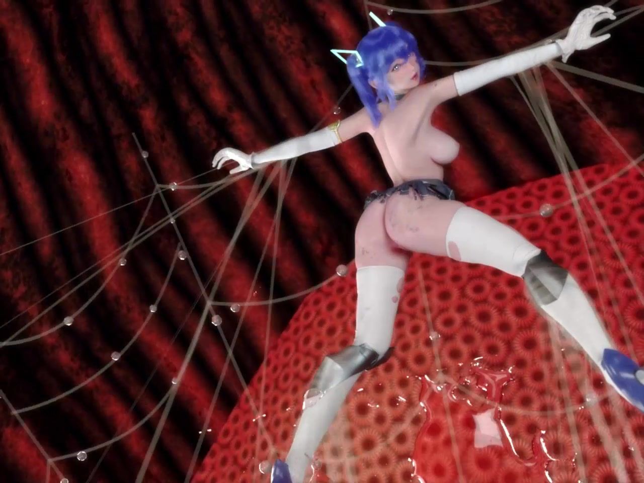 Scary big spider arranged tripple penetration tangled in the web girl
