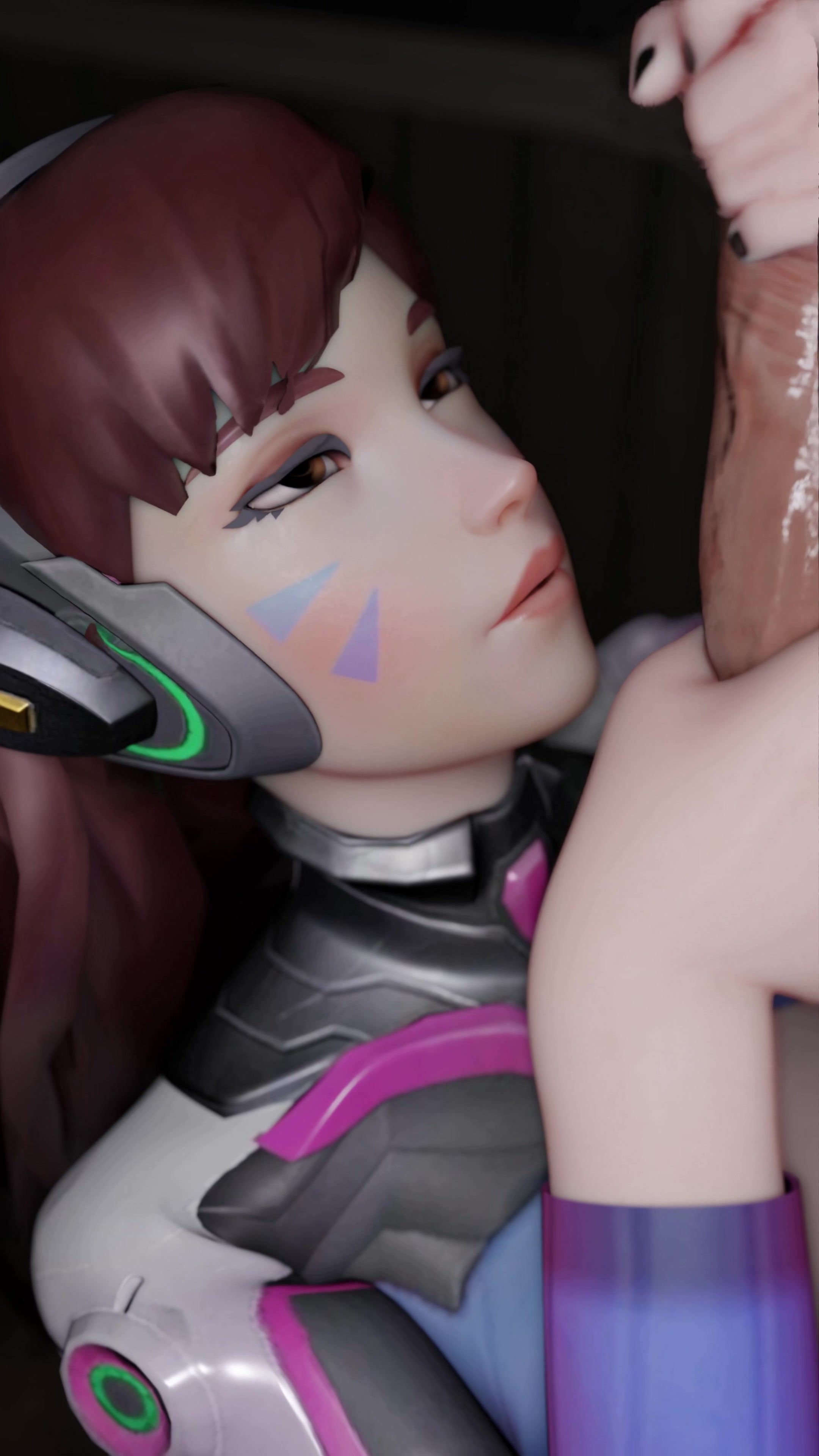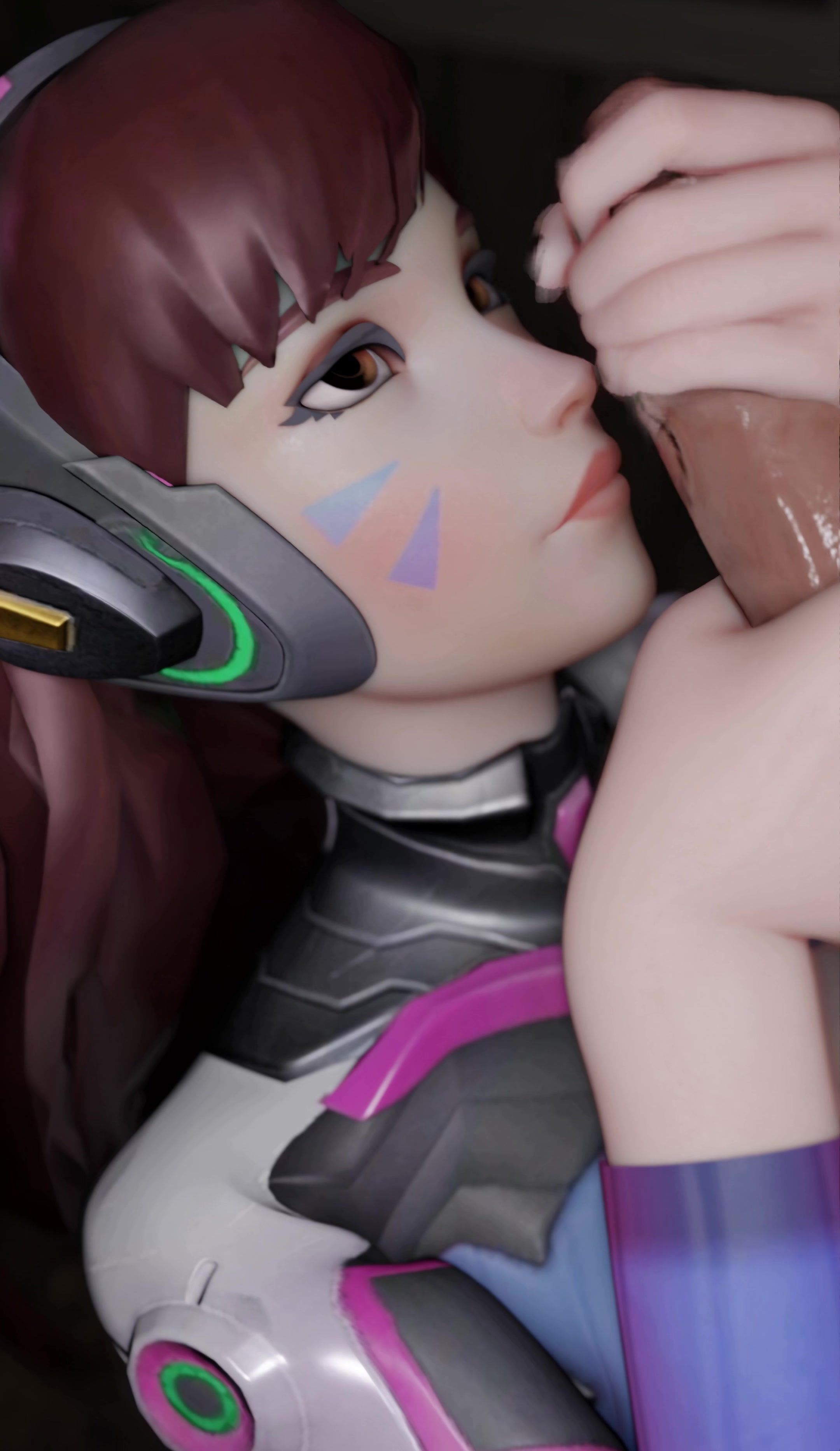 Careless guy cum in eye poor girl D.Va after blowjob