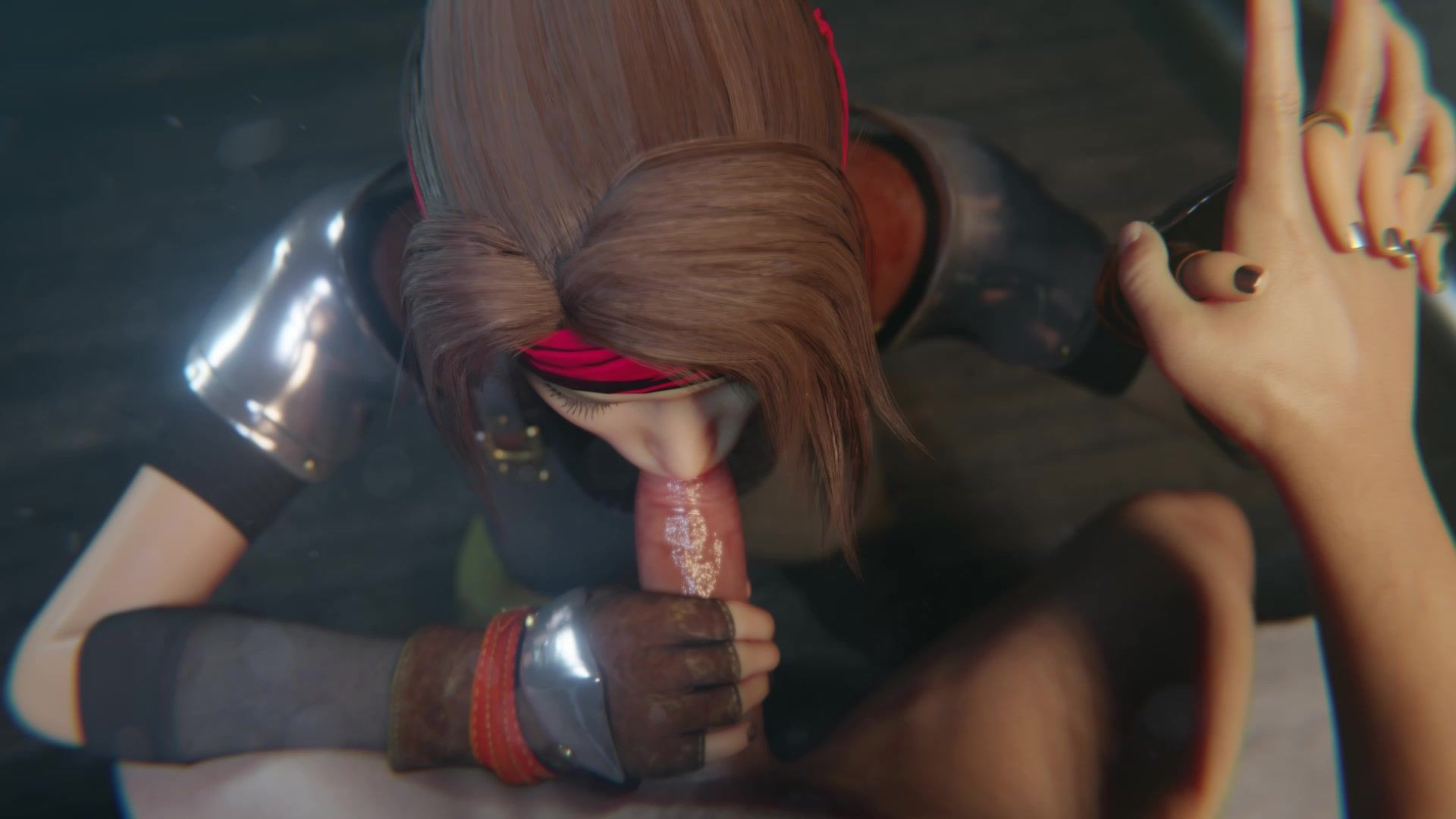 Brunette futa beautifully sucks ebony girl's dick in a dark alley