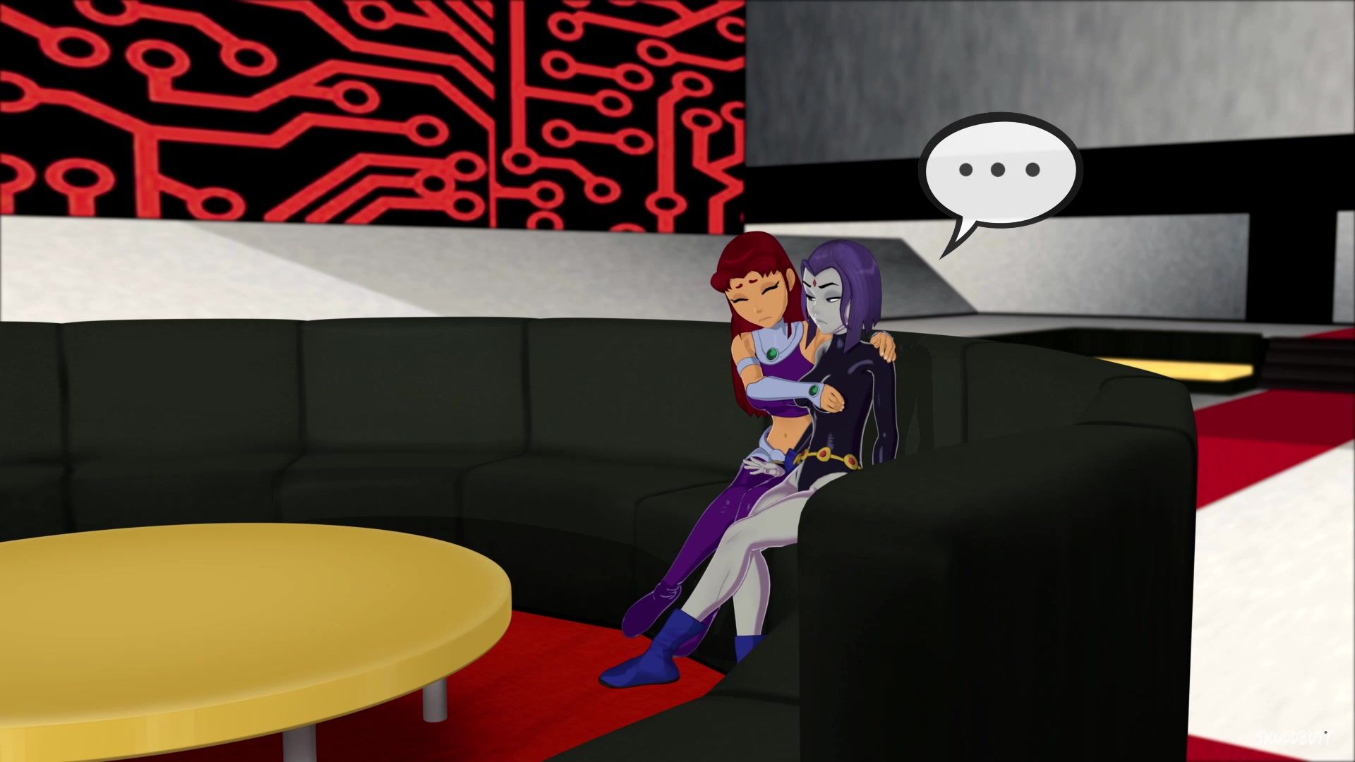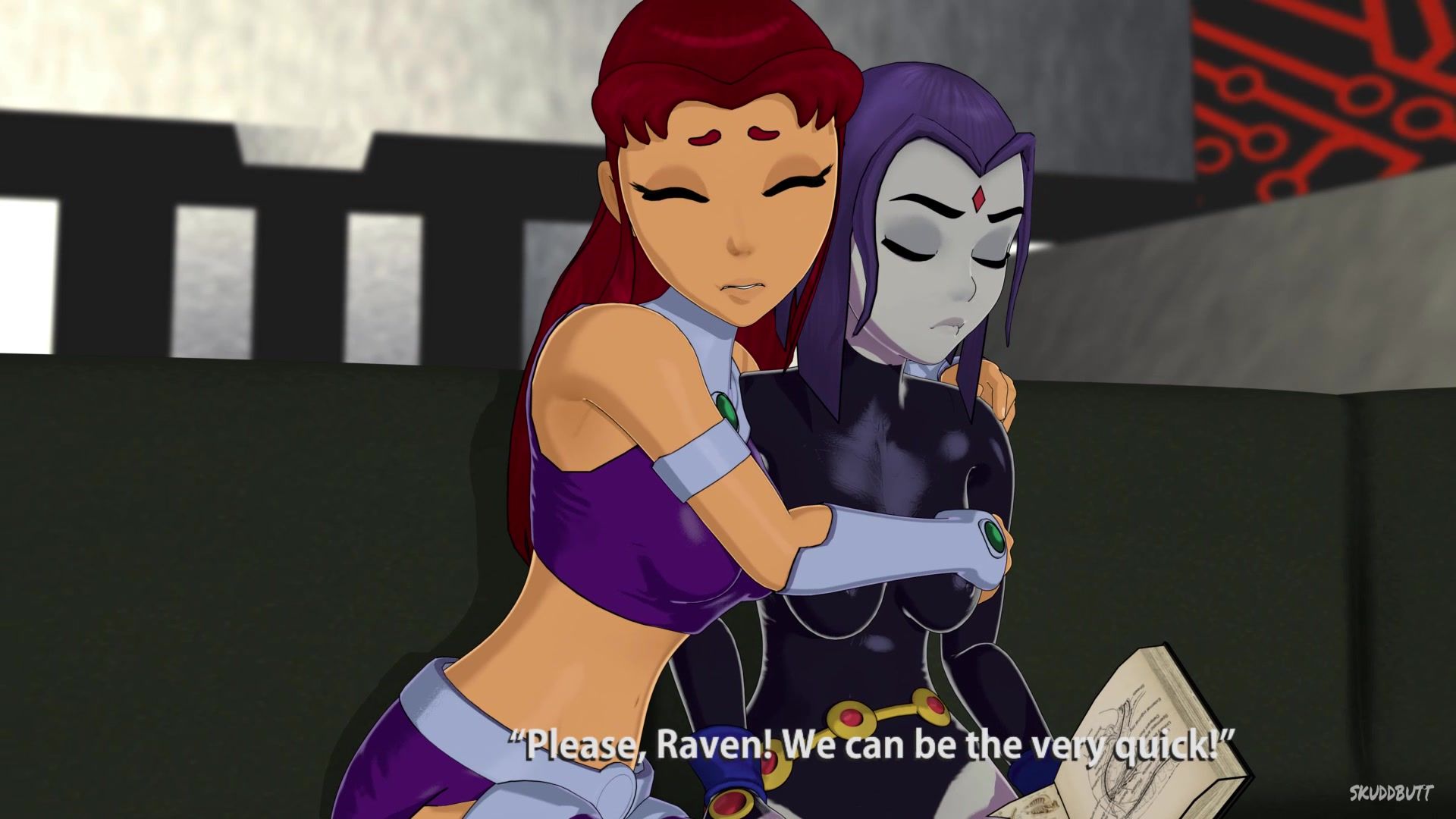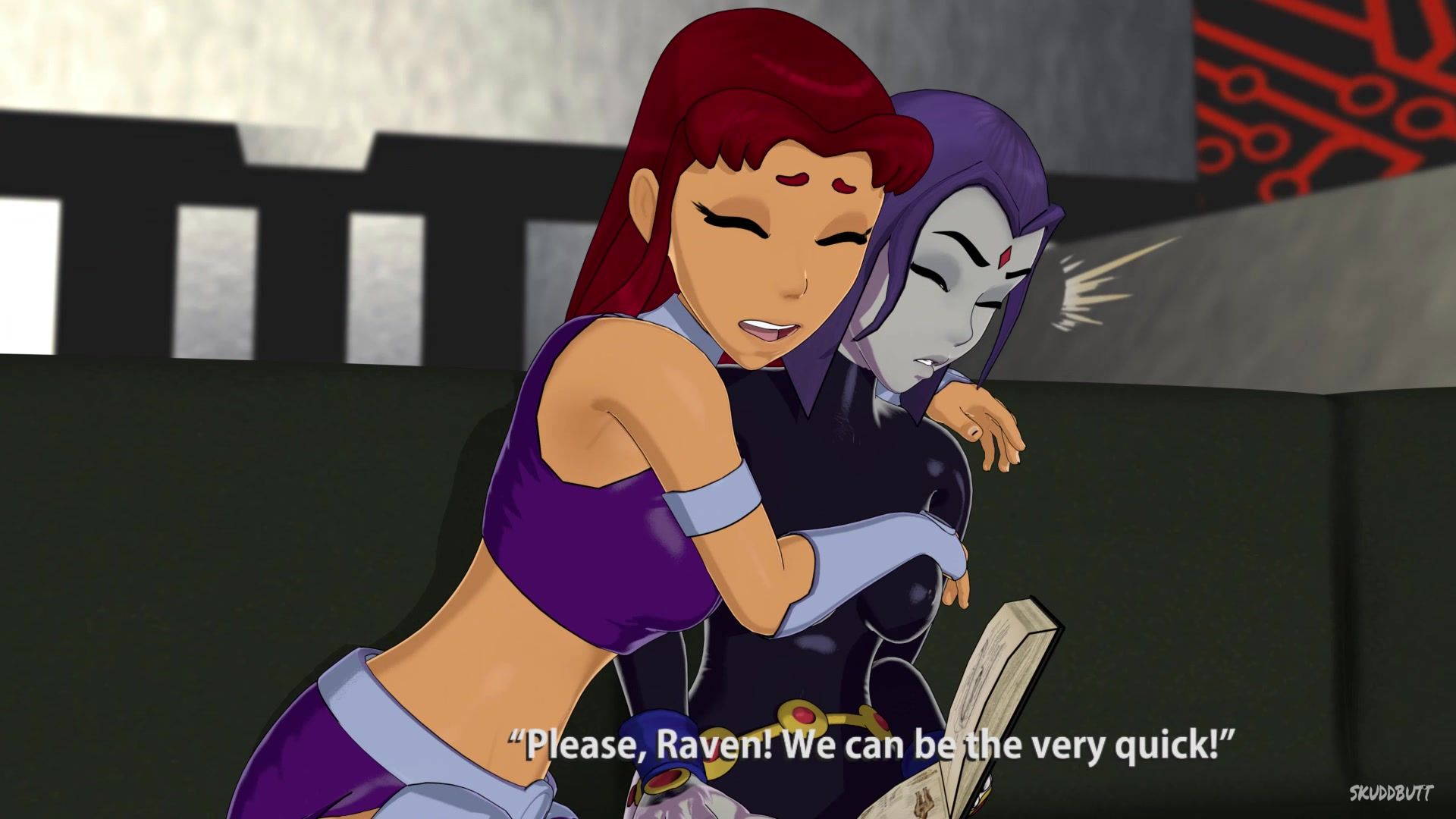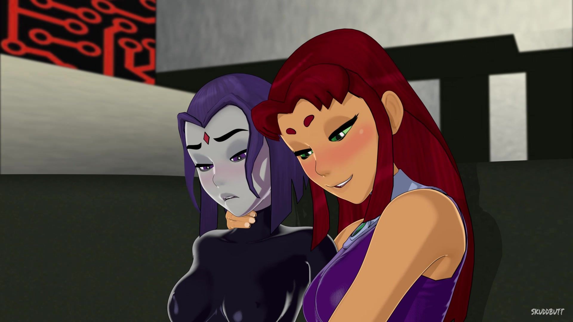 Lesbian Starfire rubbing girlfriend's Raven clit with fingers