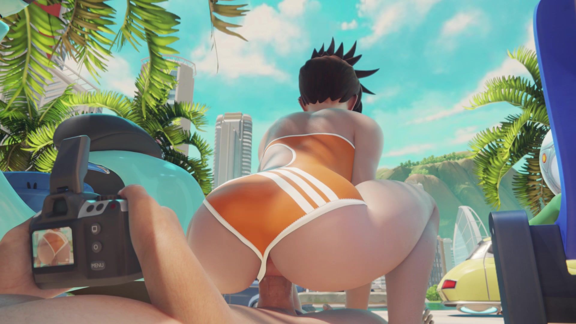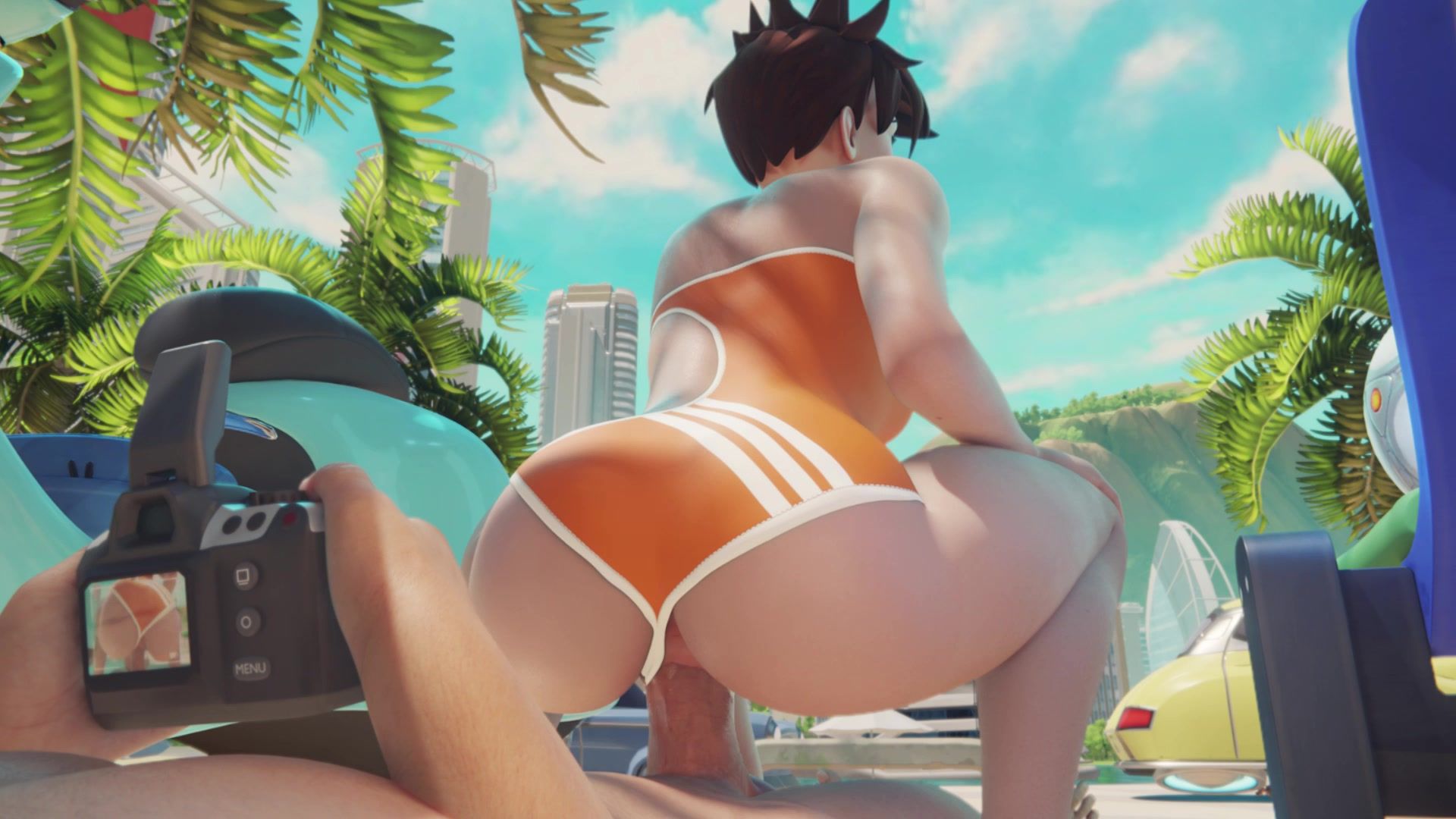 Hot girl Tracer in swimsuit fuck in cowgirl position on the beach