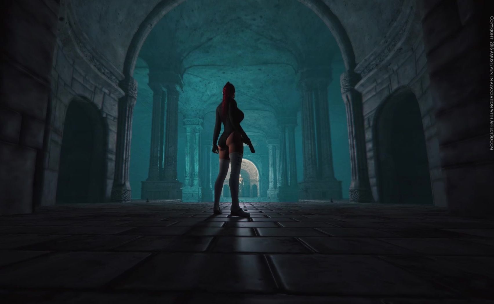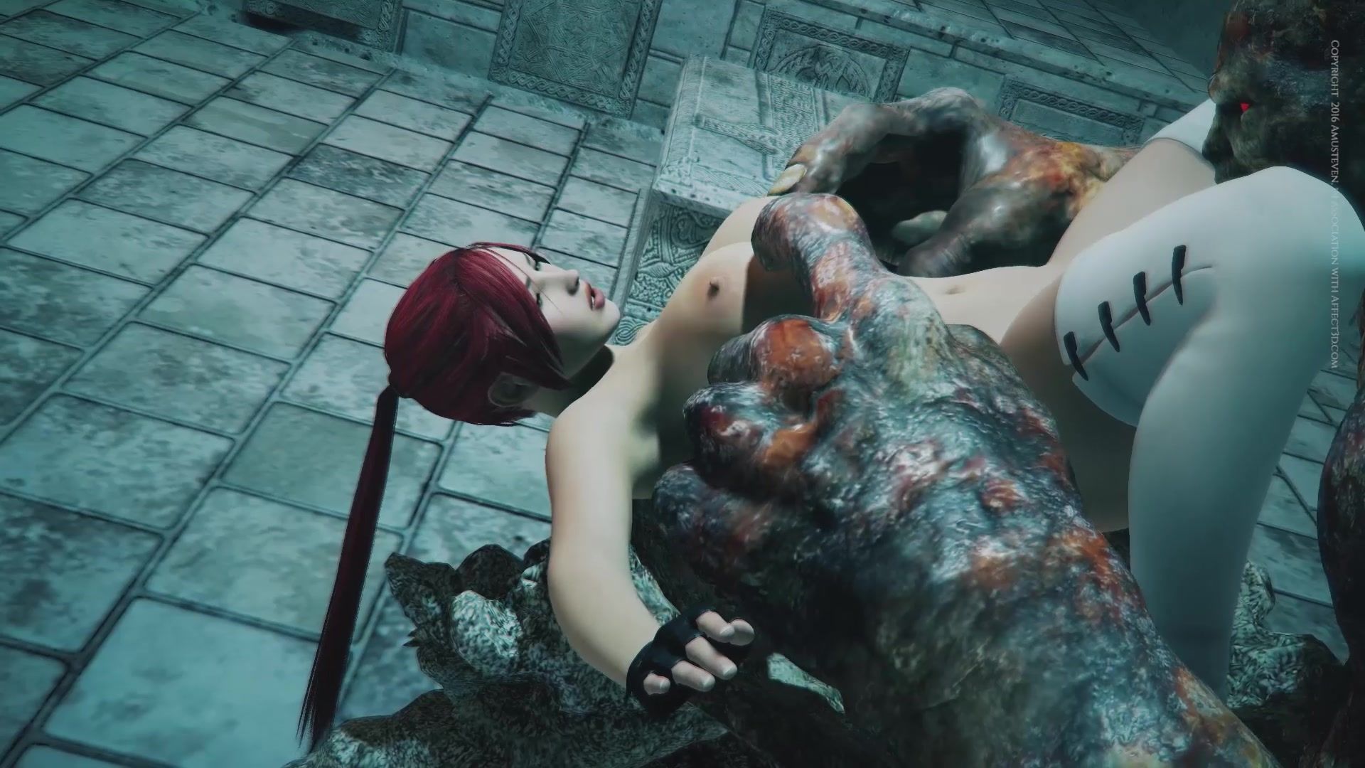 Giant stone golem hard fucks brunette with big tits in a dungeon