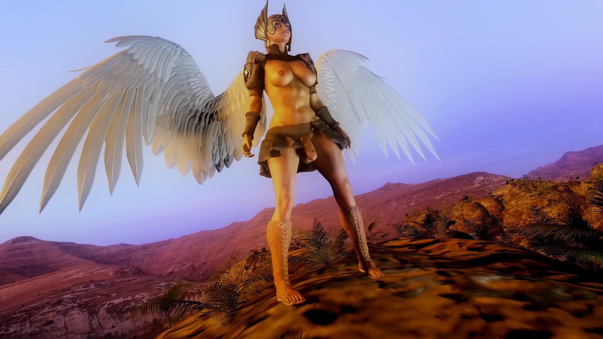 Cute girl jerking off angel's futa-cock on steep mountain