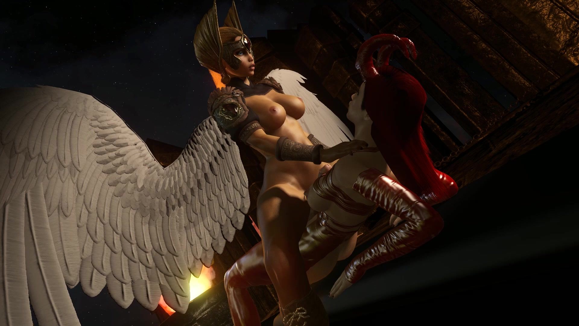 Sexy angel with big wings rides futa demon cock